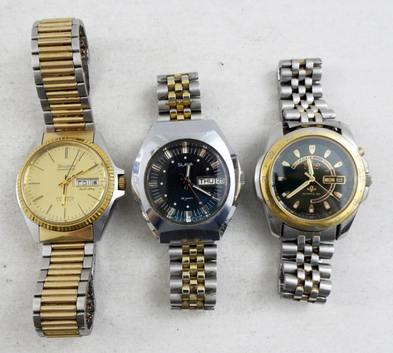 SLAVA 23j, BULOVA OCEANGRAPHER, SEIKO KINETIC – ALL RUNNING SELF WINDING – NEEDS SERVICED