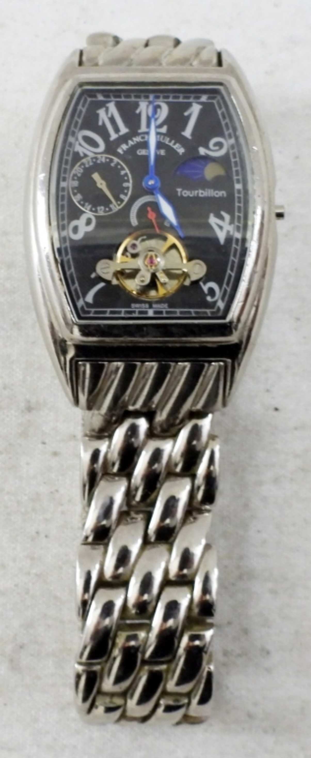 FRANCK MULLER TOURBILLON CONQUISTADOR SWISS LUXURY WATCHMAKER. MISSING CROWN! STILL SEEMS TO BE RUNNING. VERY HEAVY WATCH! -NOT TESTED AS TO WORKING OR NOT!-