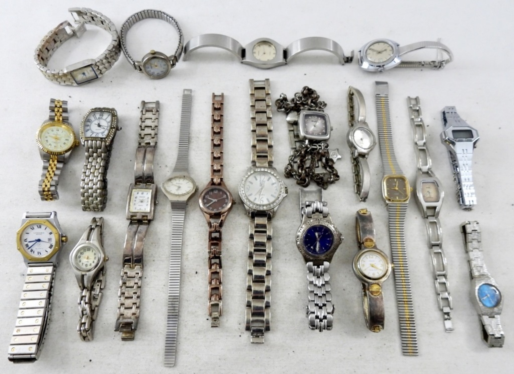 20 LADIES WATCHES, LARGE VARIETY OF STYLES. TIMEX, LIMOGES, PEUGEOT TIMEX & MORE. -NOT TESTED AS TO WORKING OR NOT!-