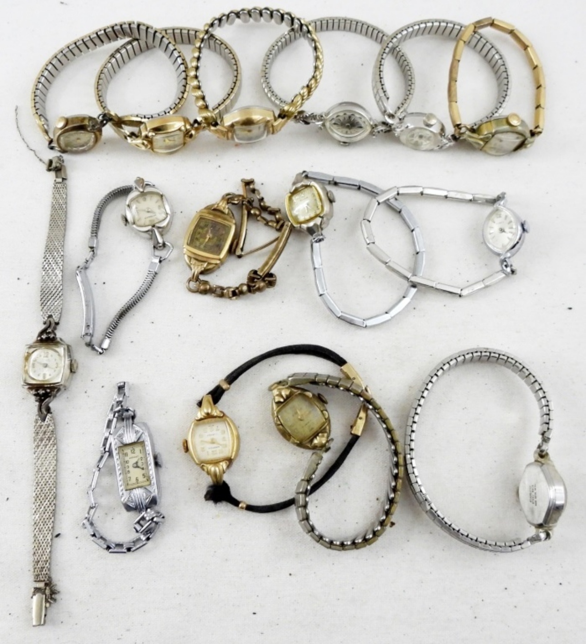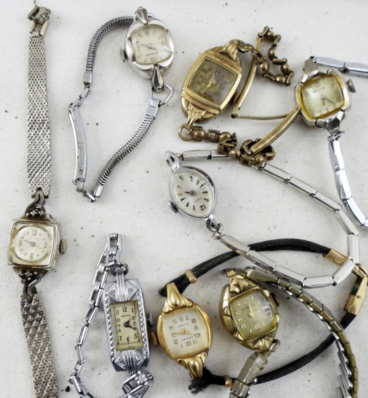 15 PETITE VINTAGE LADIES WATCHES. MORMACK, GRUEN, WITTNAUER, BENRUS, BULOVA, CROTON, HELBROS, ELGIN, WESTCLOX, TIMEX. -NOT TESTED AS TO WORKING OR NOT!-