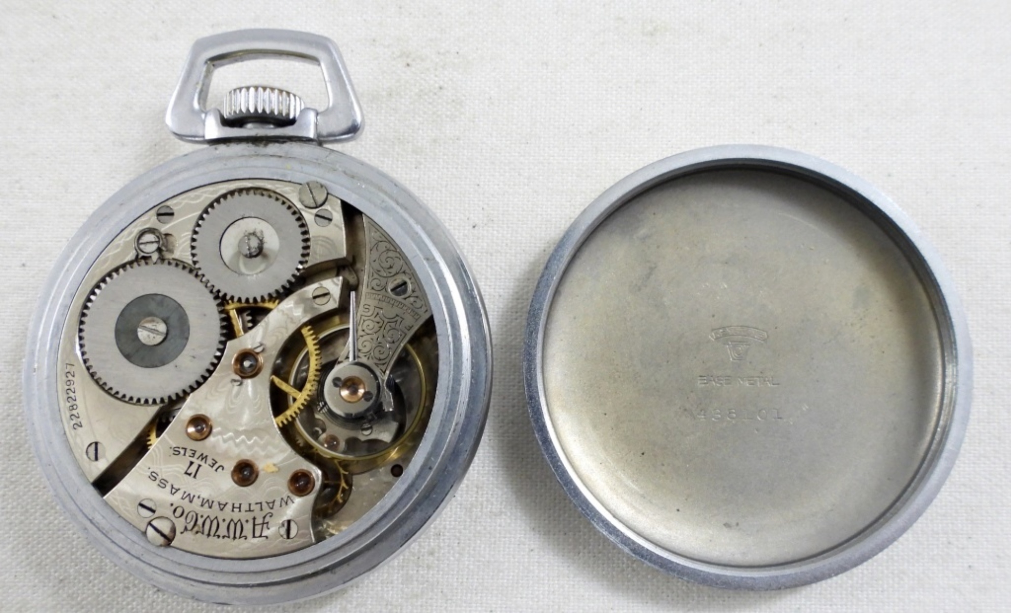 FACE HAS CRACKS, MOVEMENT SERIAL NUMBER 22822927, GRADE 625, SIZES 16S, 17J, RUNS NEEDS SERVICE