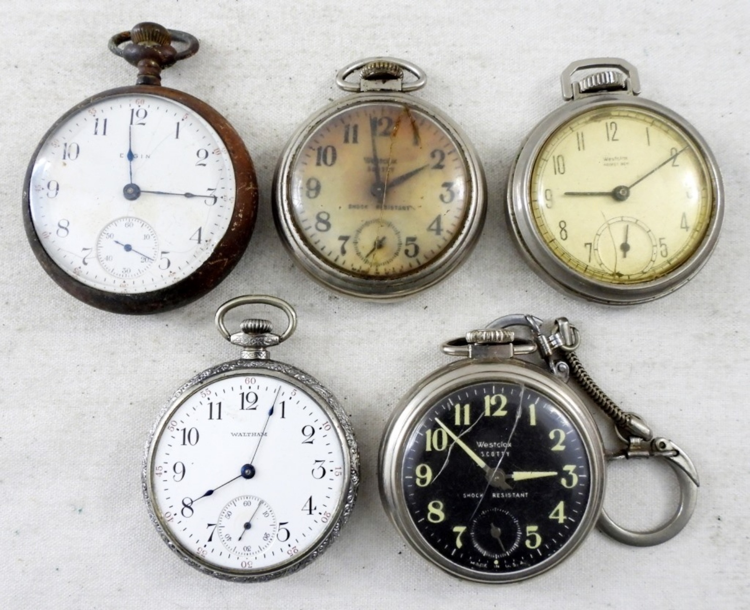 3- WESTCLOX, 1- WALTHAM, 1- ELGIN