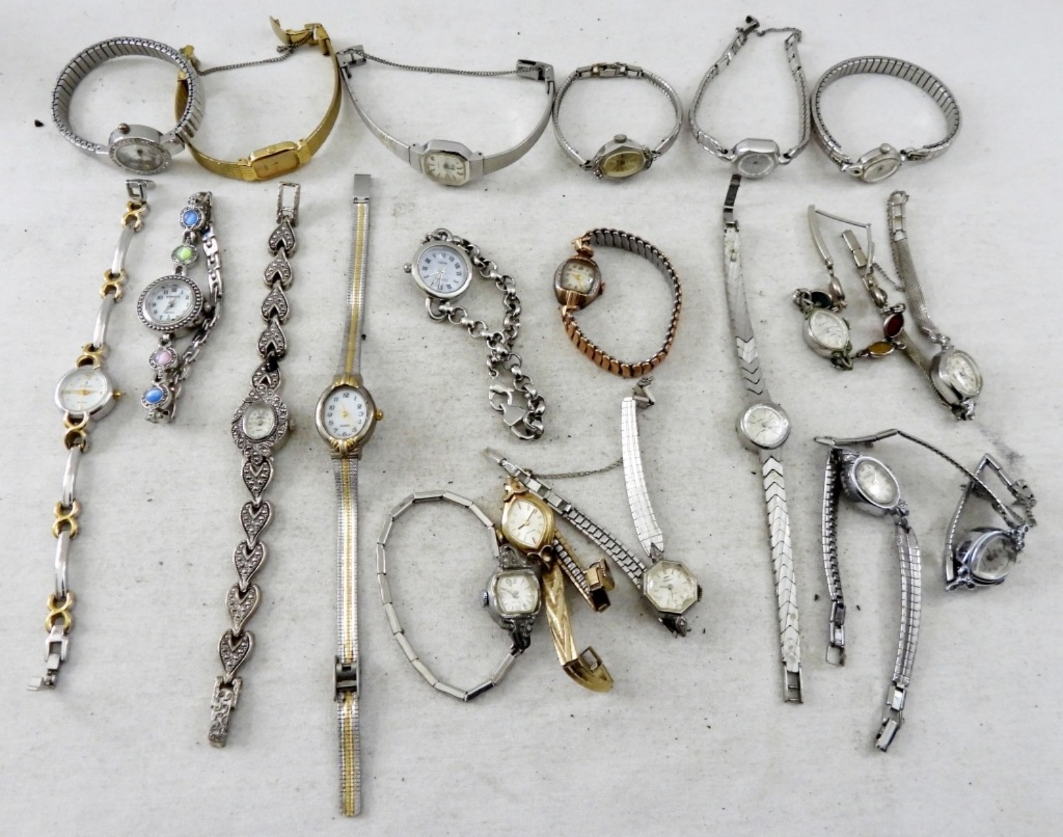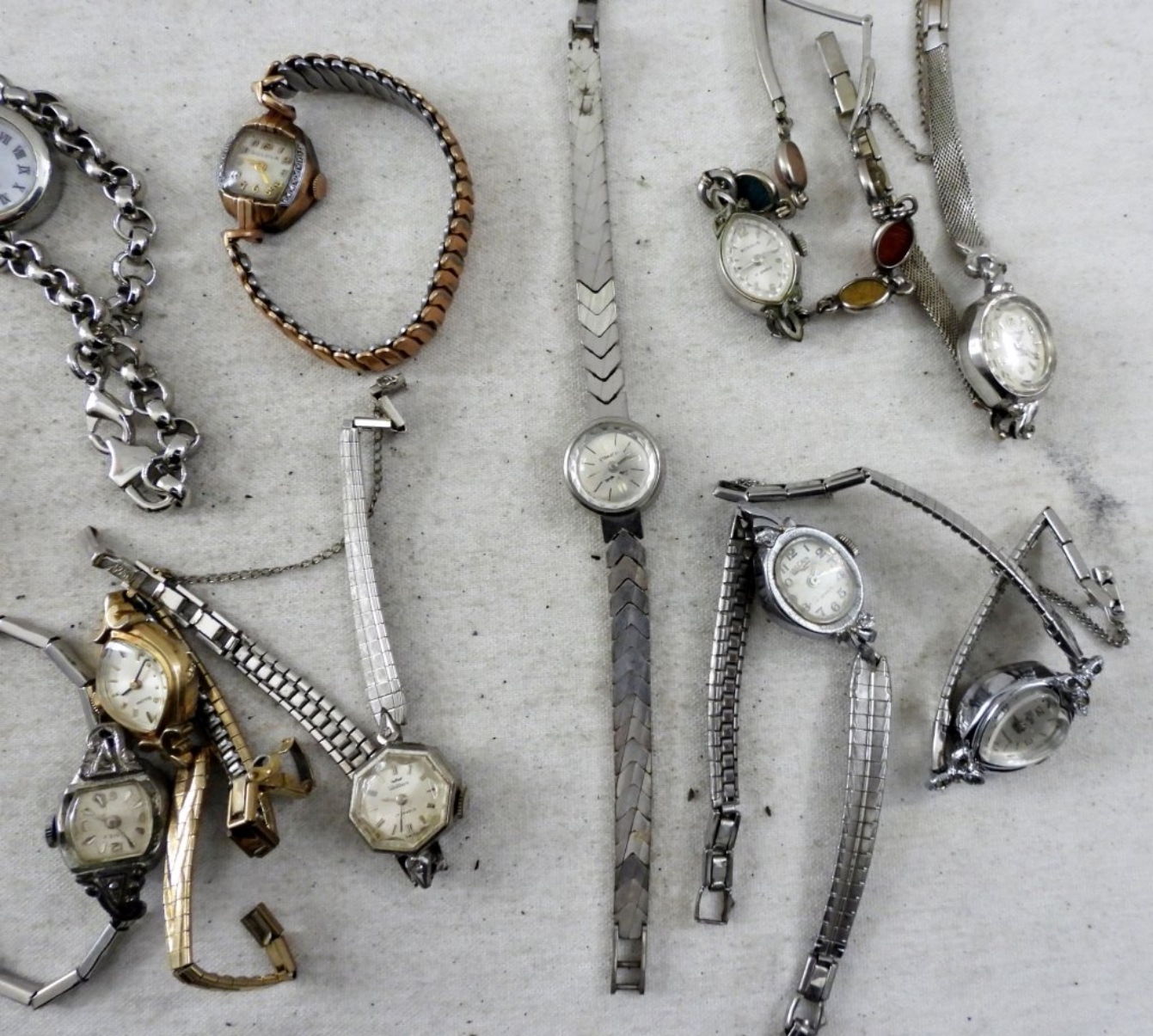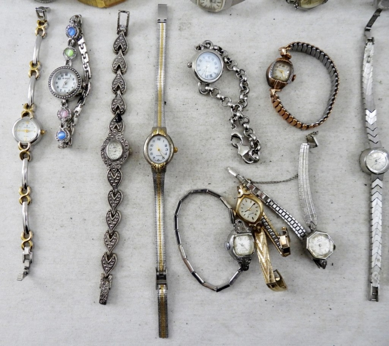 Minimalist Vintage Women’s watches. Some silver and gold tones. Very Dainty and Slim watches. Some brands are Bulova, Vantage, Rumors. ” NOT TESTED AS TO WORKING OR NOT”