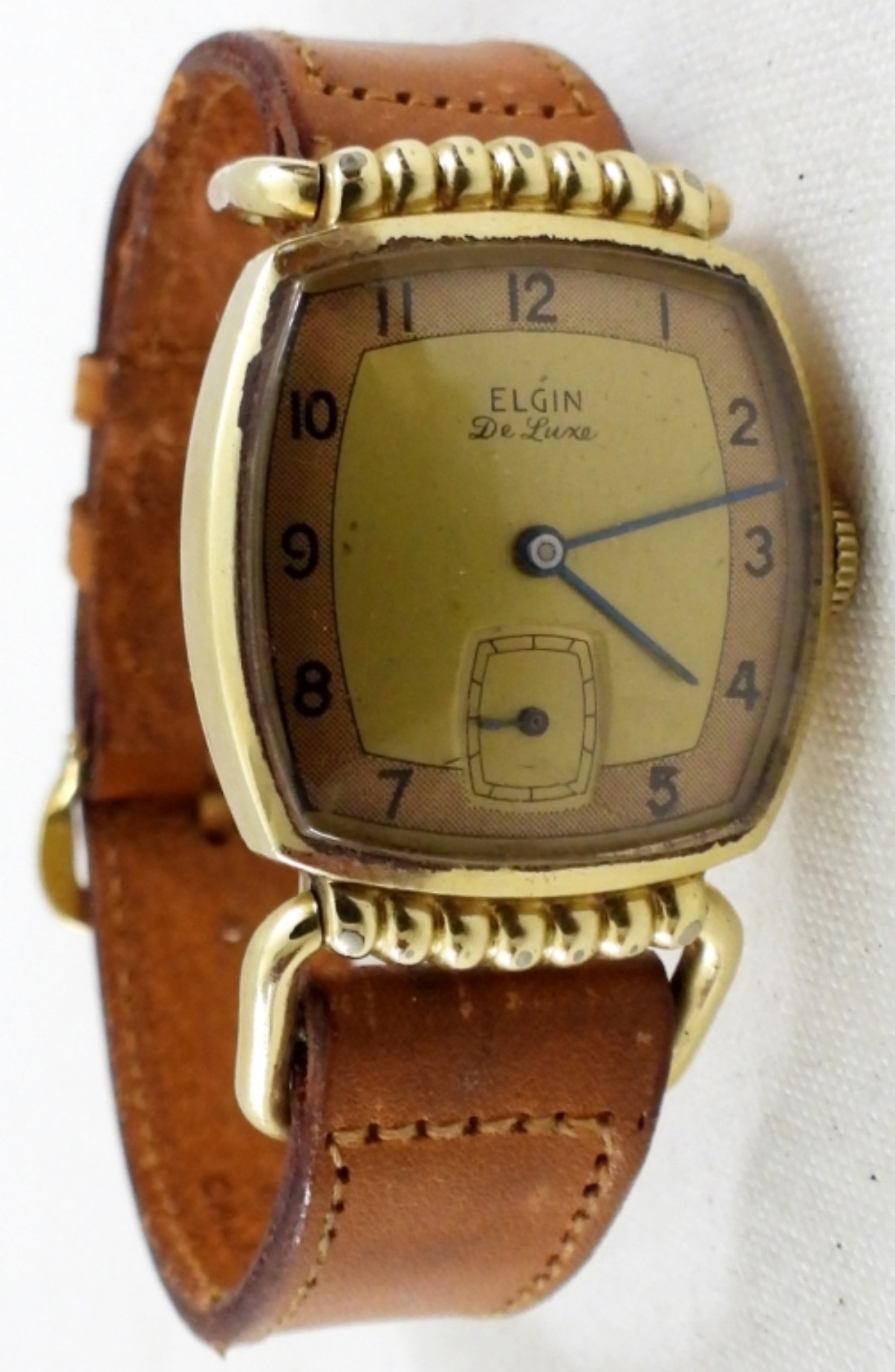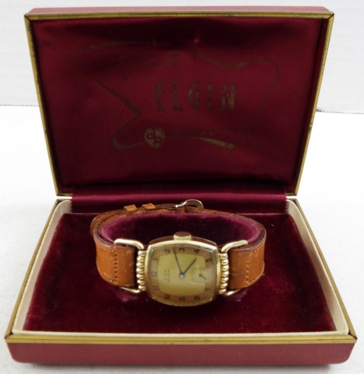 1940’S-1950’S Elgin De Luxe Durapower watch, with case. 10k Gold filled with calfskin band. “NOT TESTED TO WORKING OR NOT”