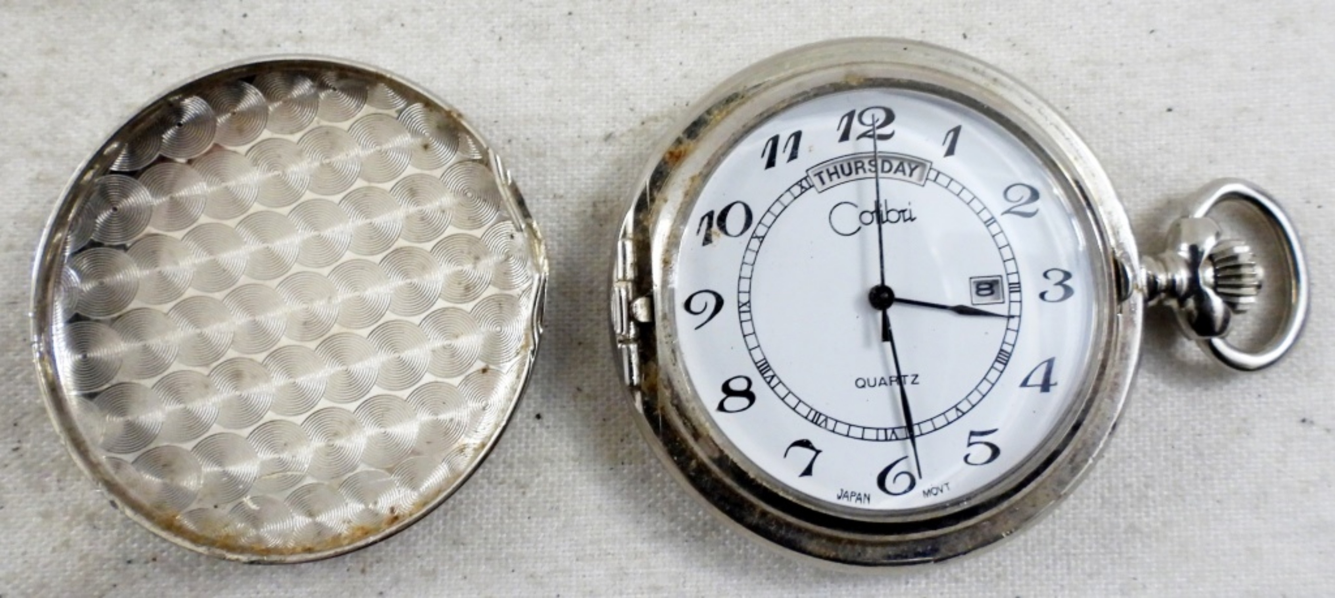 Colibri Quartz pocket watch in silver tone. “NOT TESTED AS TO WORKING OR NOT”