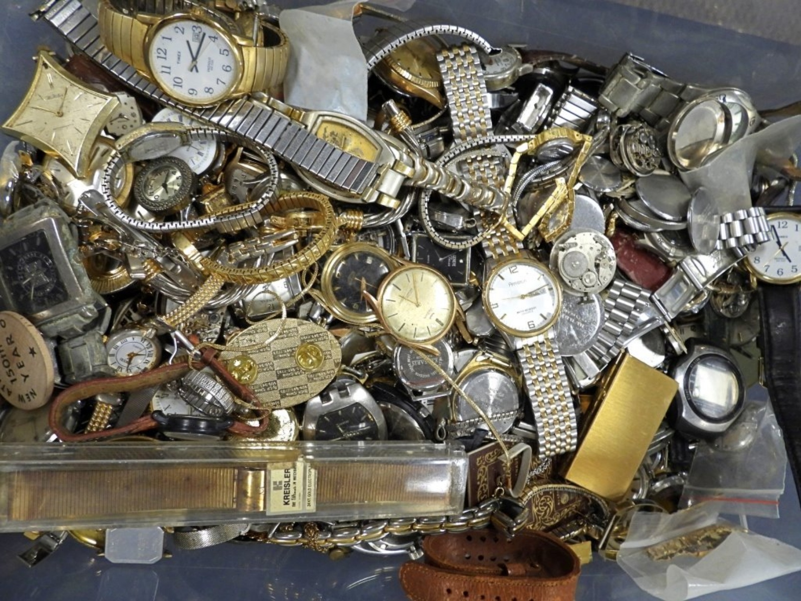 Big Diversity, Medium size Flat Rate Box Filled with Watch Movements, Parts pieces- Watch Repairmen’s Dream