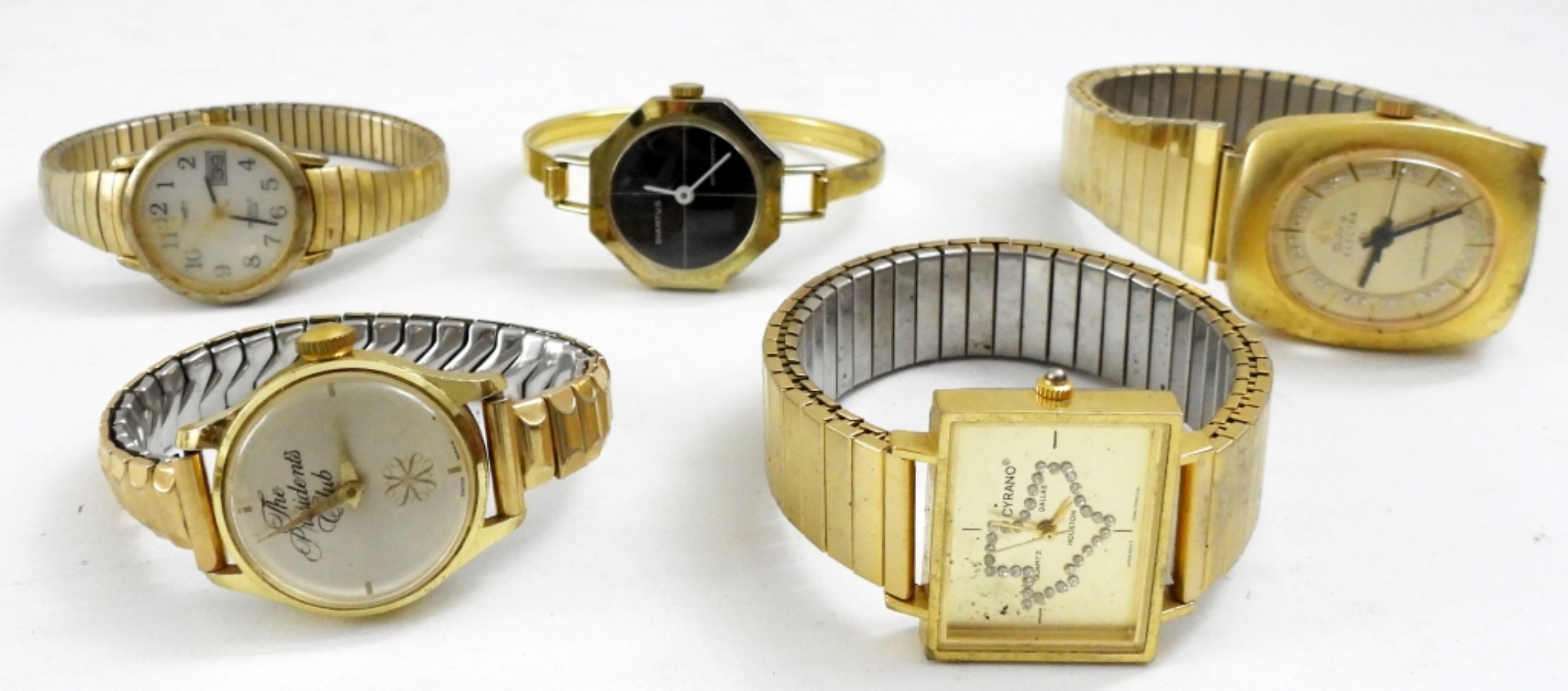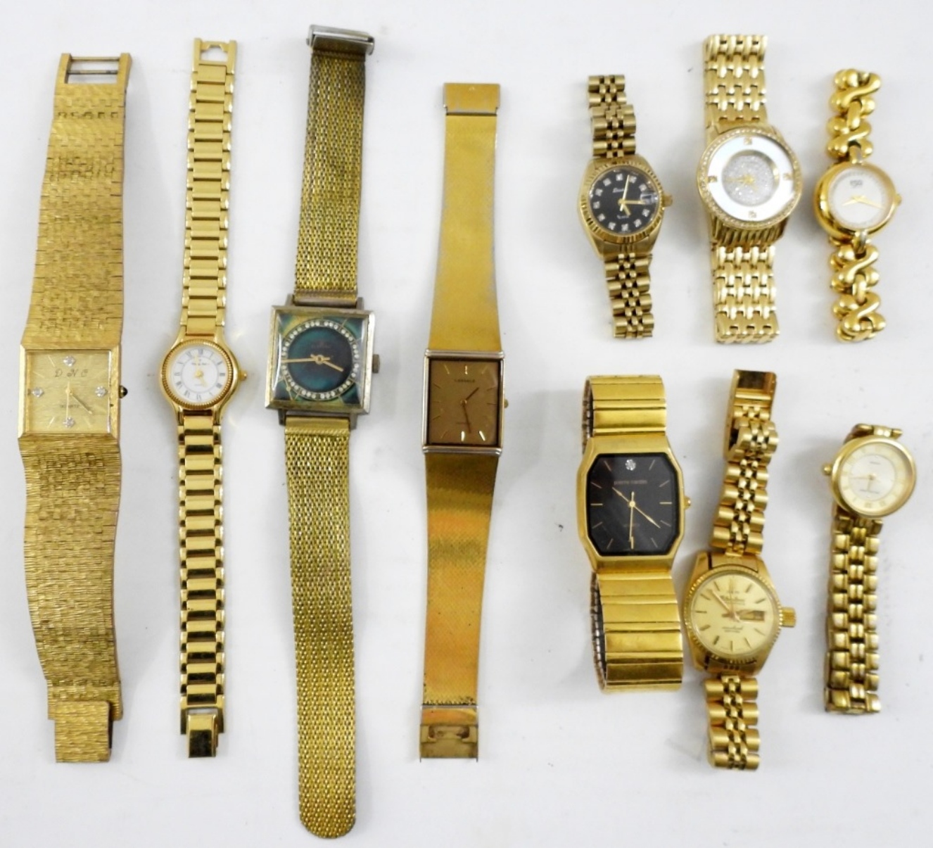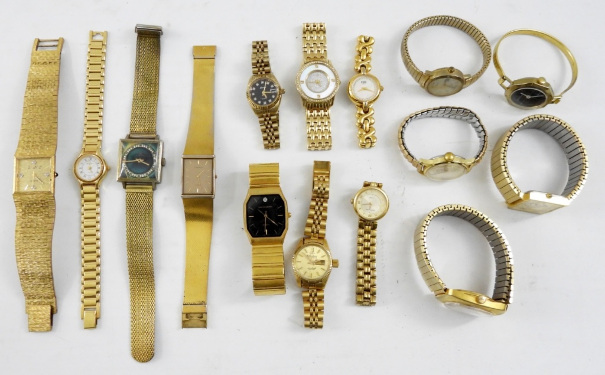 FIFTEEN LADIES GOLD TONE WATCHES. PIERRE CARDIN, LASSALE, FOSSIL, TIMEX, ESQ & MORE -NOT TESTED AS TO WORKING OR NOT-