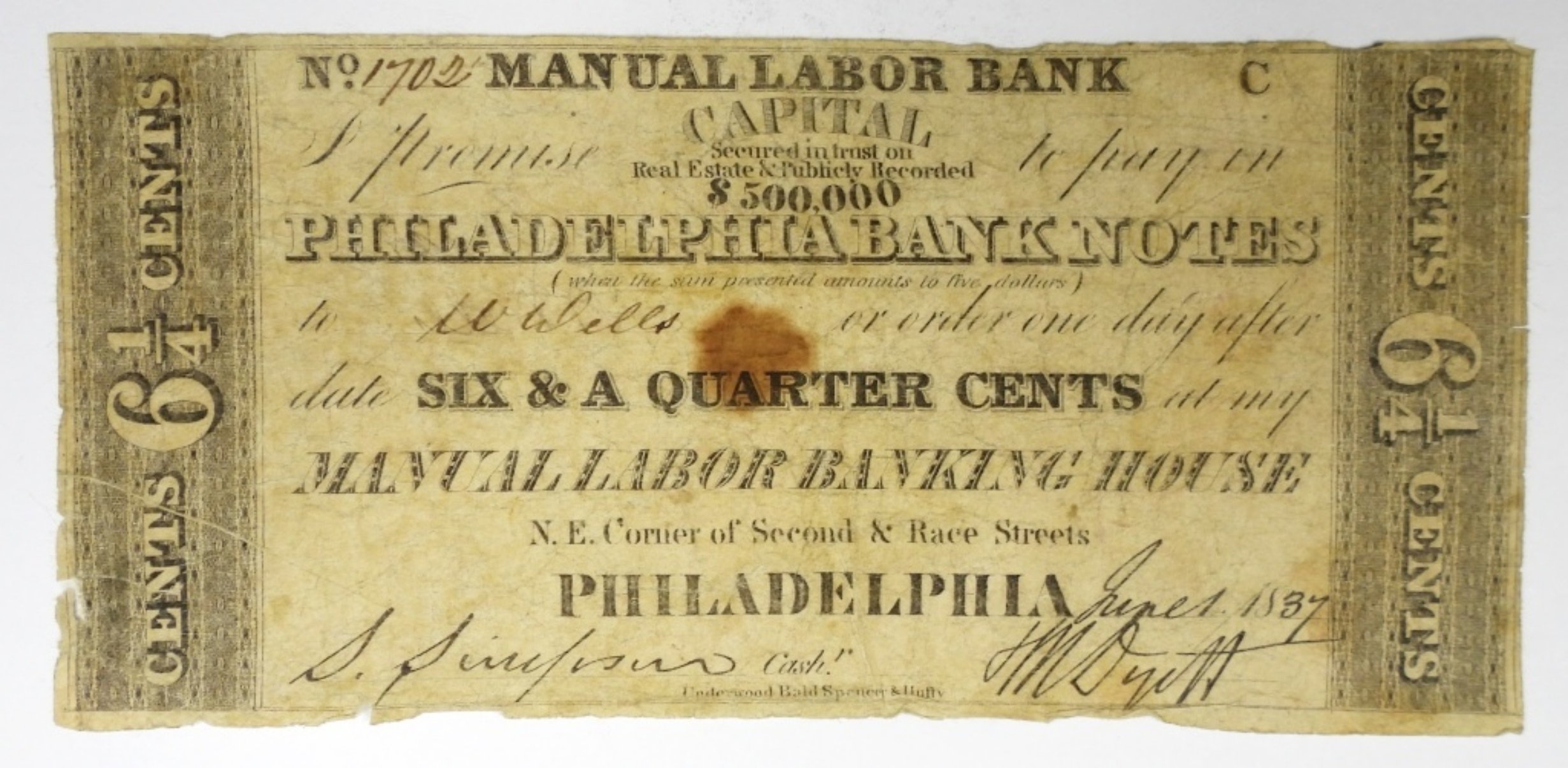 6 1/4 PHILADELPHIA BANK OBSOLETE NOTE