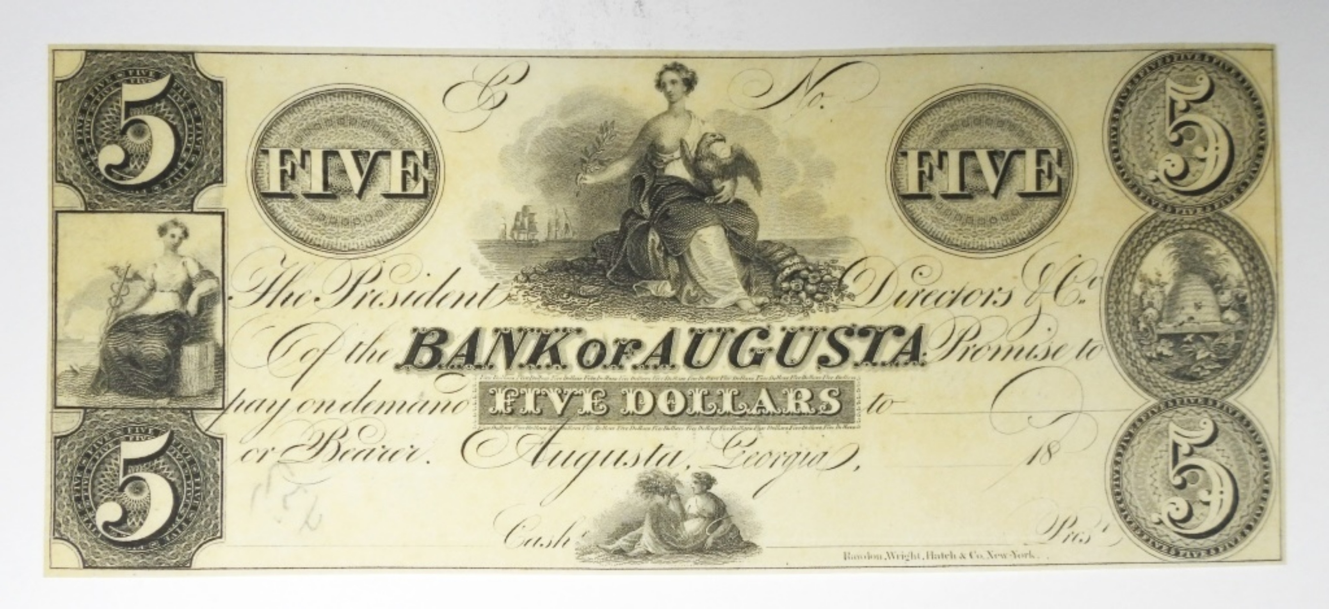 $5 BANK OF AUGUSTA OBSOLETE NOTE