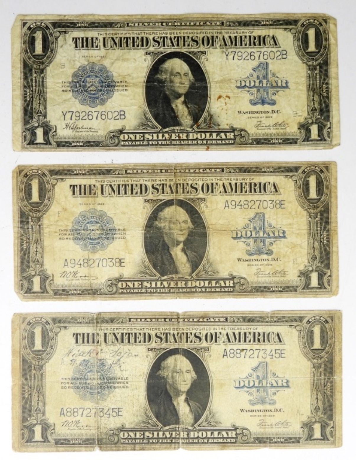 (3) 1923 $1 SILVER CERTIFICATE