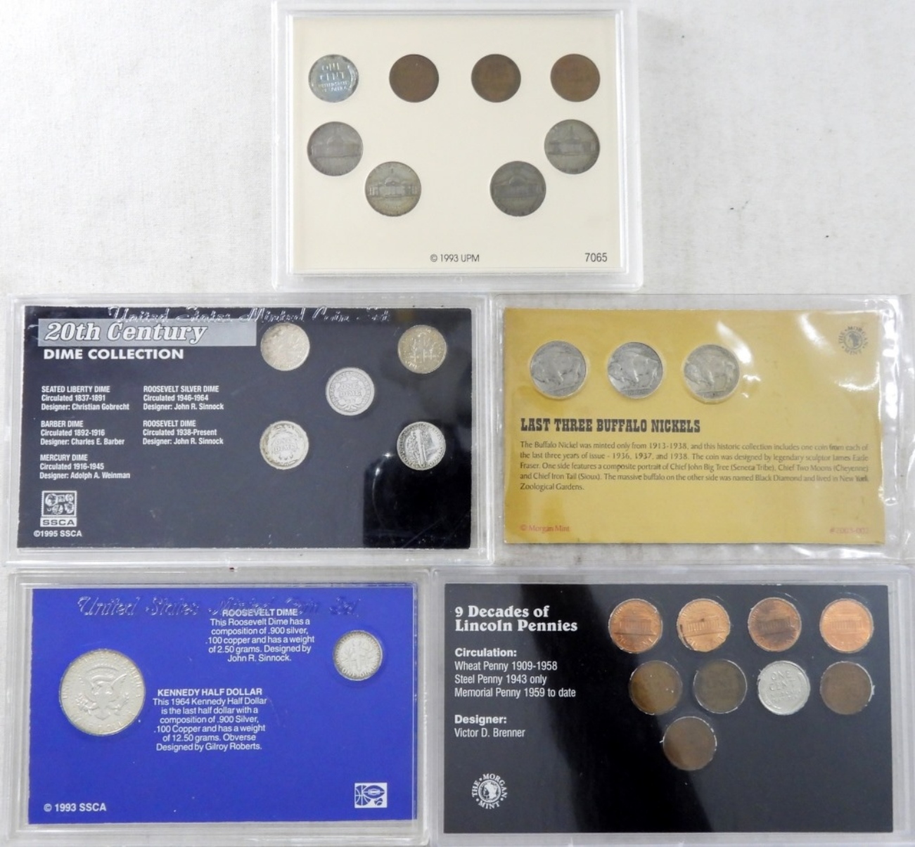 PRESIDENTS COLLECTIONS w/STAMPS, LAST THREE BUFFALO NICKELS, 20th CENTURY DIME COLLECTION, WWII OBSOLETE COINS, 9 DECADES of LINCOLN PENNIES