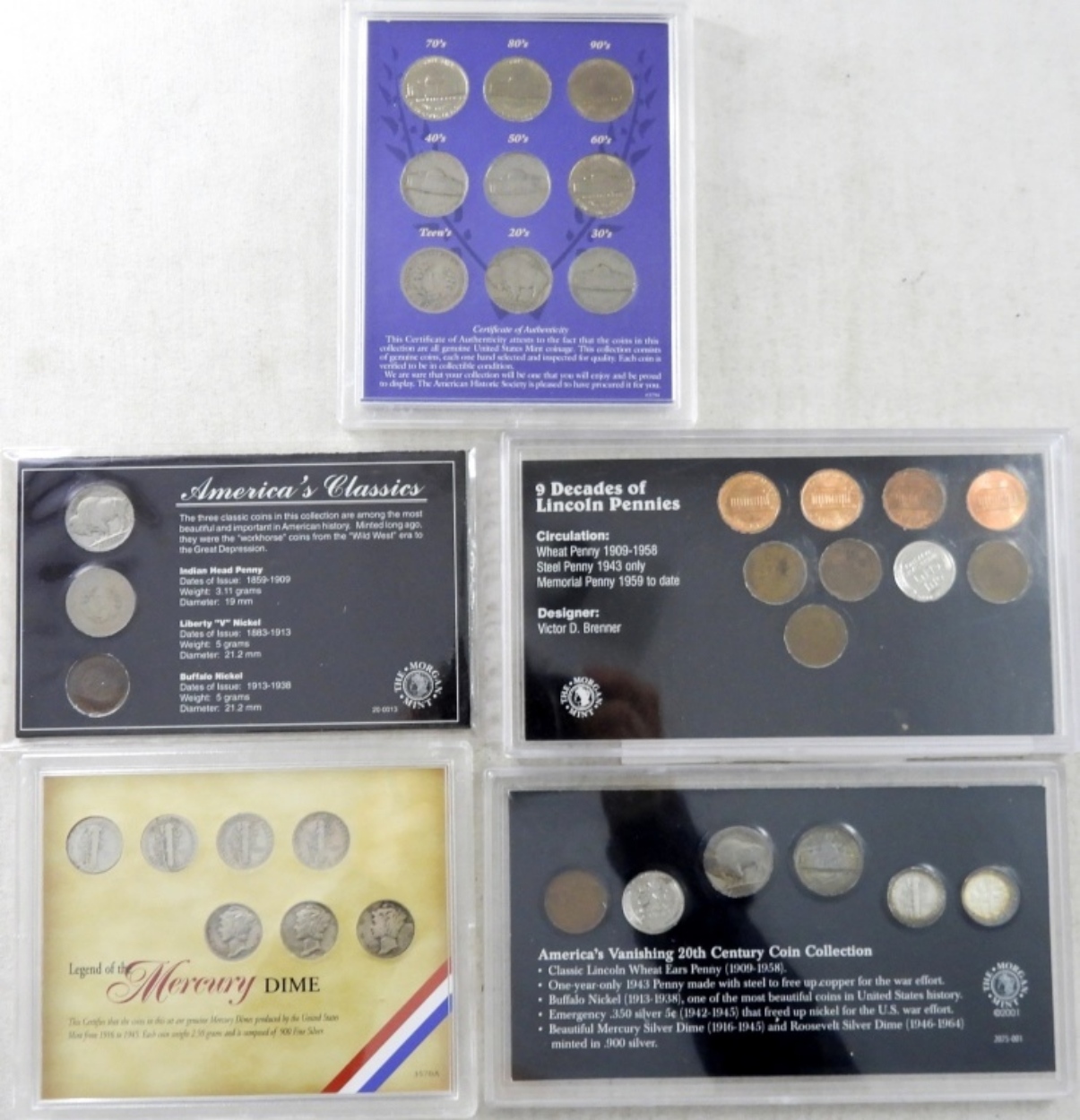 20th CENTURY COIN COLLECTION, NINE DECADES of NICKELS, 9 DECADES of LINCOLN PENNIES, AMERICA’S CLASSICS, LEGEND of MERCURY DIME