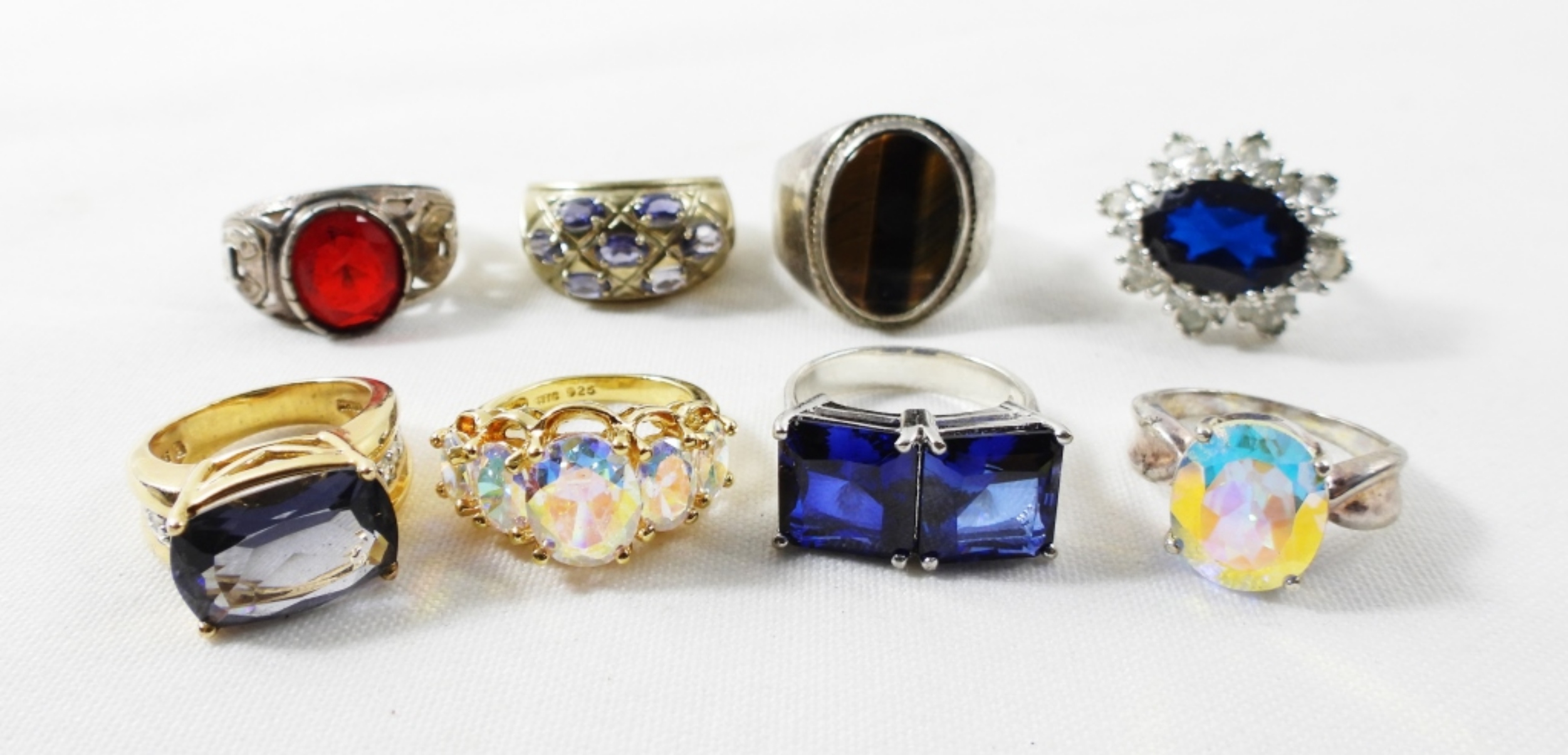SIZES RANGE 5-9, ASSORTED GEMSTONES, SILVER/GOLD TONES, 38.2 DWT
