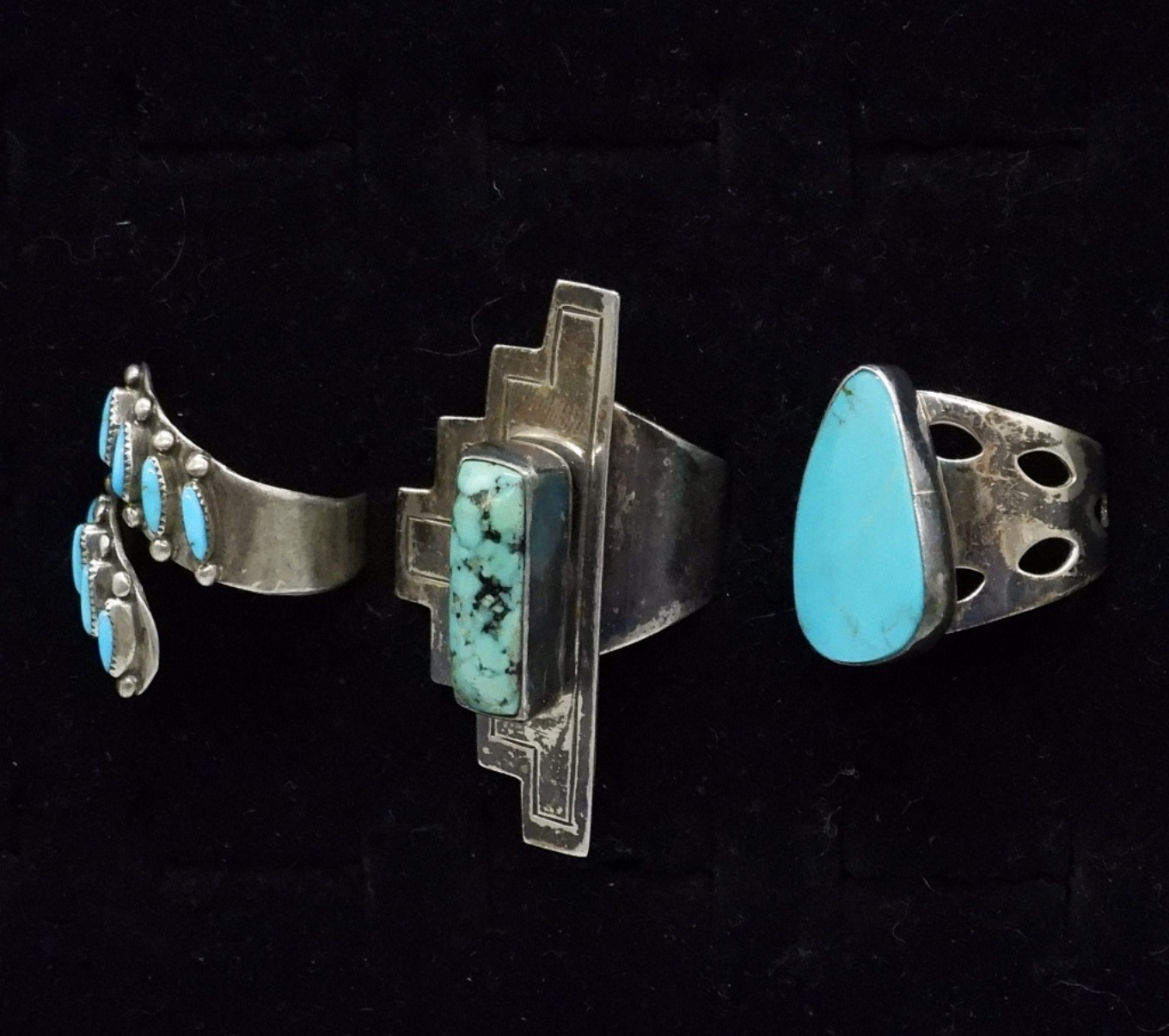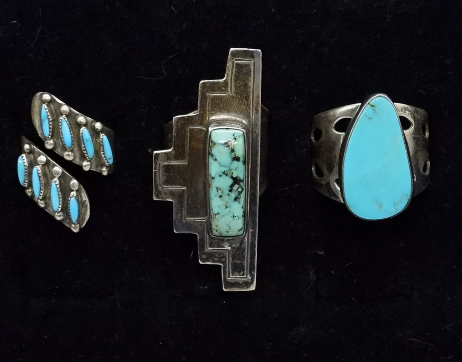 3 STERLING TURQUOISE RINGS. SIZES 7, 9, 11. 18.5 DWT
