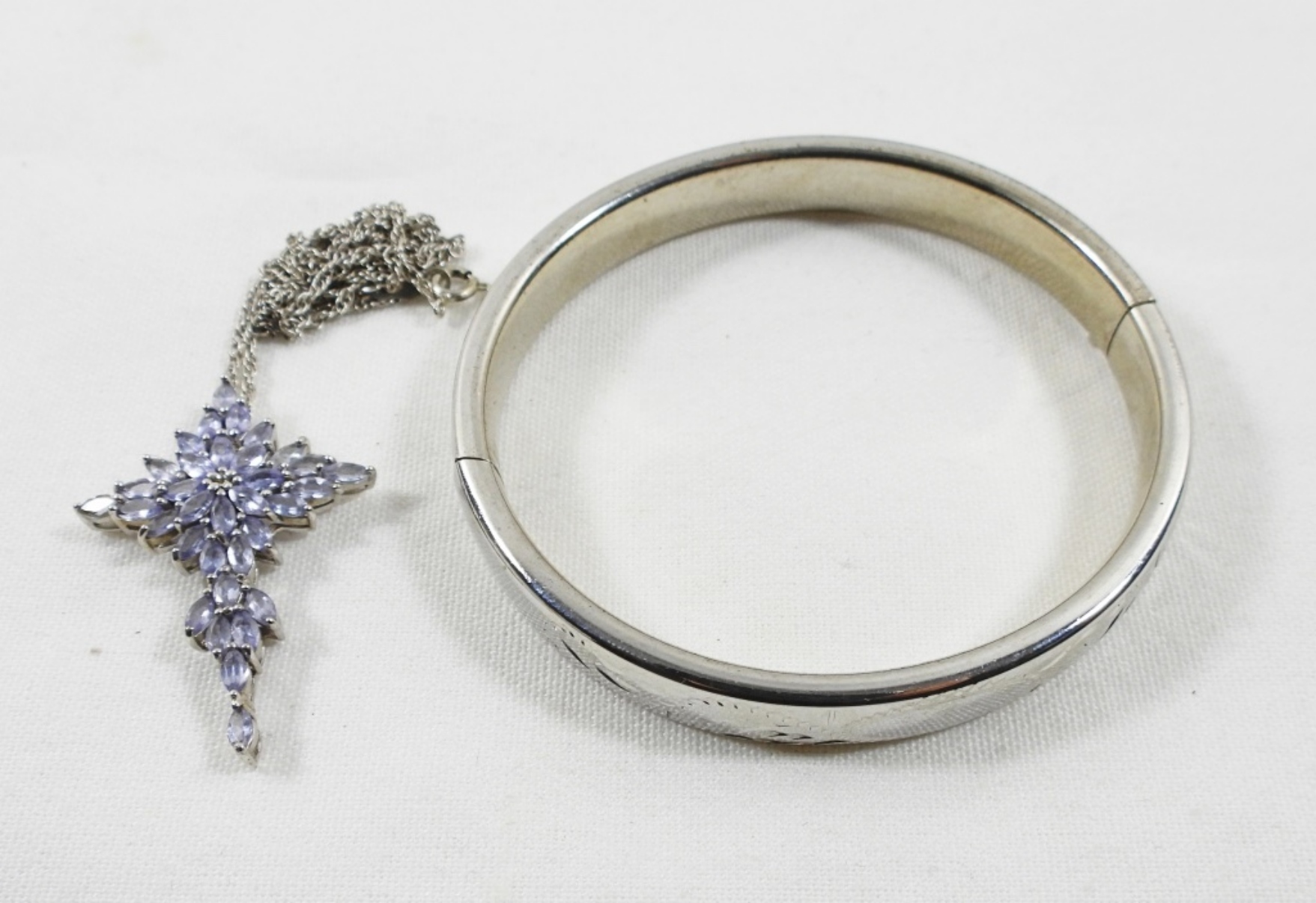 21″ CHAIN & CRAFTMERE ETCHED 925 HINDGED BRACELET – PRETTY LOT (16 DWT)