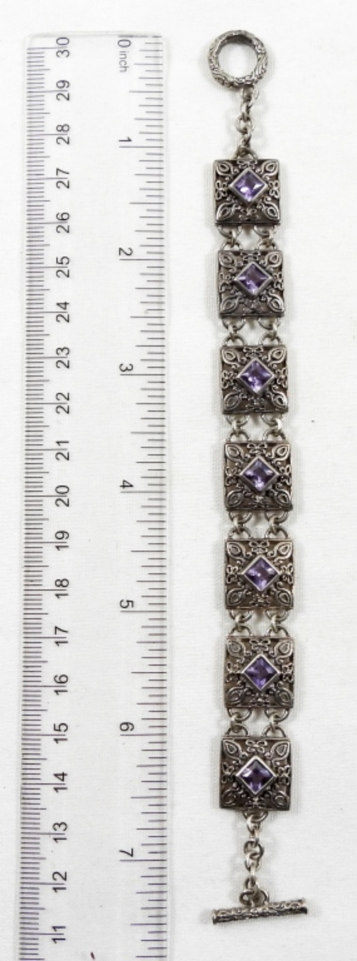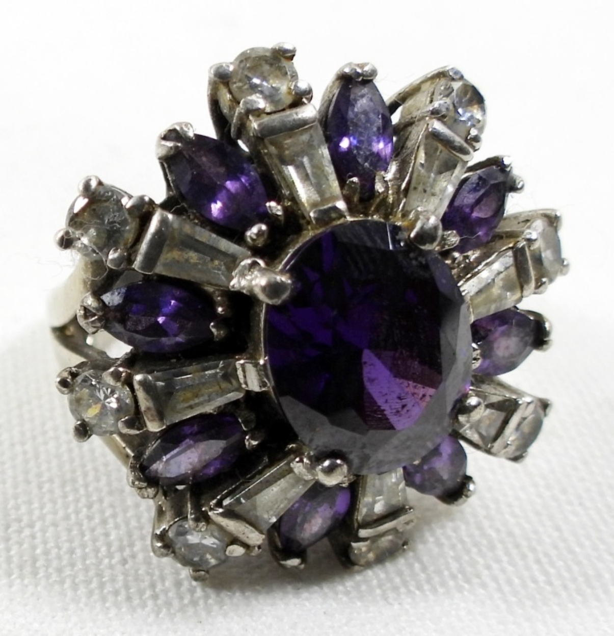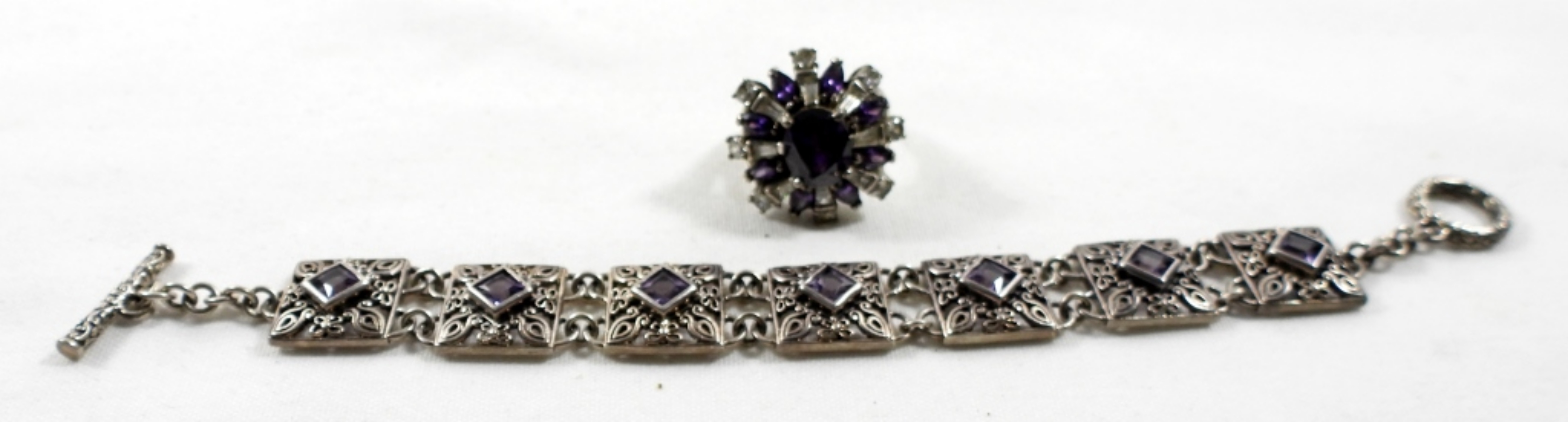 VINTAGE PURPLE RHINESTONE BRACELET & PURPLE & CLEAR RHINESTONE RING STERLING SILVER 925