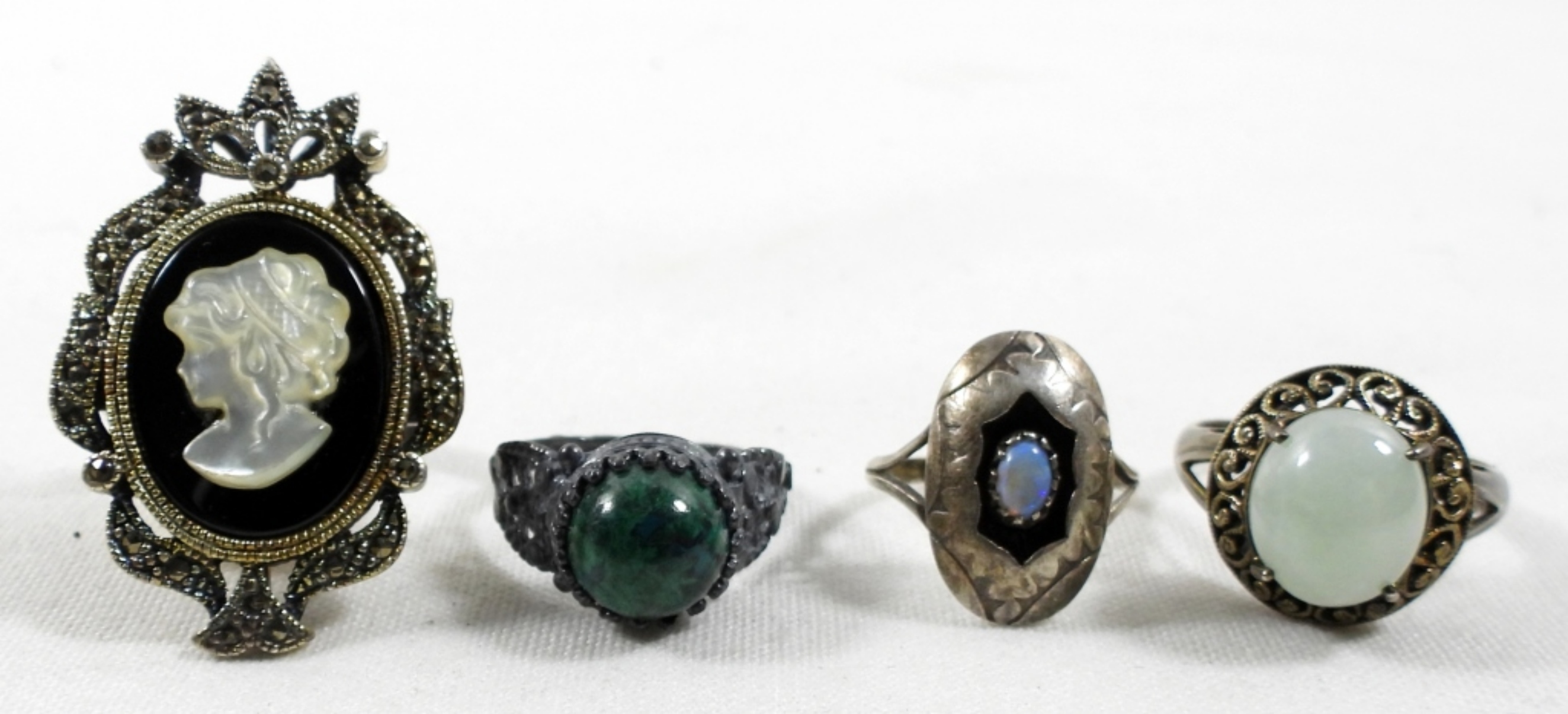 VINTAGE BLACK & WHITE CAMEO RING SIZE 9 & 3 VARIOUS STONE RINGS WITH DIFFERENT COLOR STONES SIZE VARIES (7-9) STRLING SILVER 925 15.5 DWT