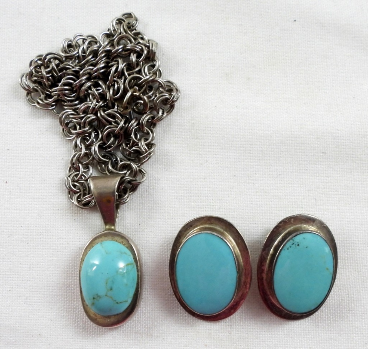PENDANT ON CHAIN LENGTH 16IN, EARRINGS ARE CLIP ON, 25.4 DWT