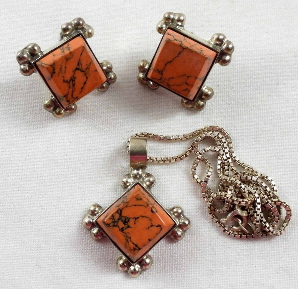 PENDANT ON CHAIN LENGTH 18IN, STUD EARRINGS, 19.2 DWT