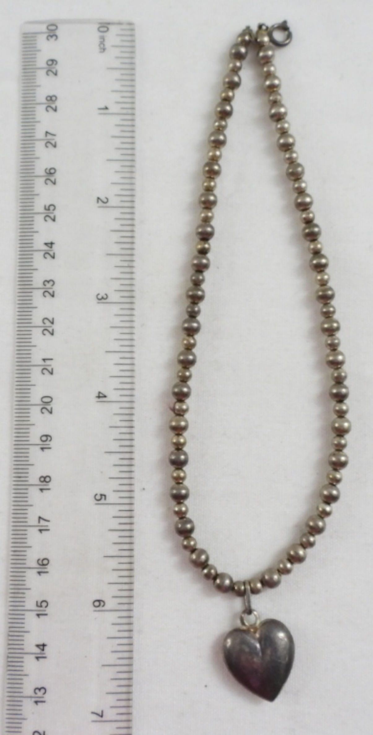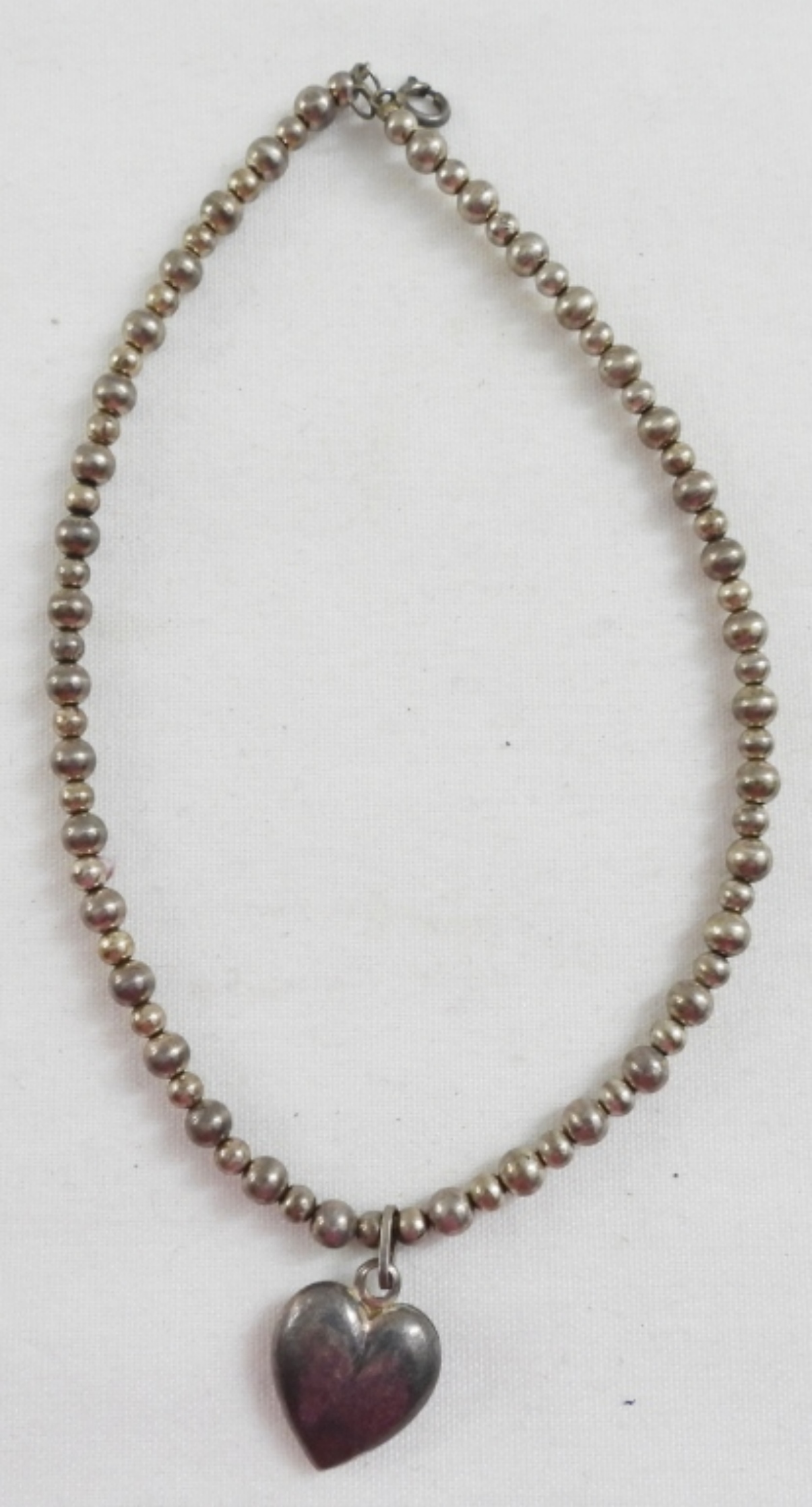 BEAUTIFUL BEADED HEART NECKLACE 12″ STERLING SILVER 925 7.2 DWT