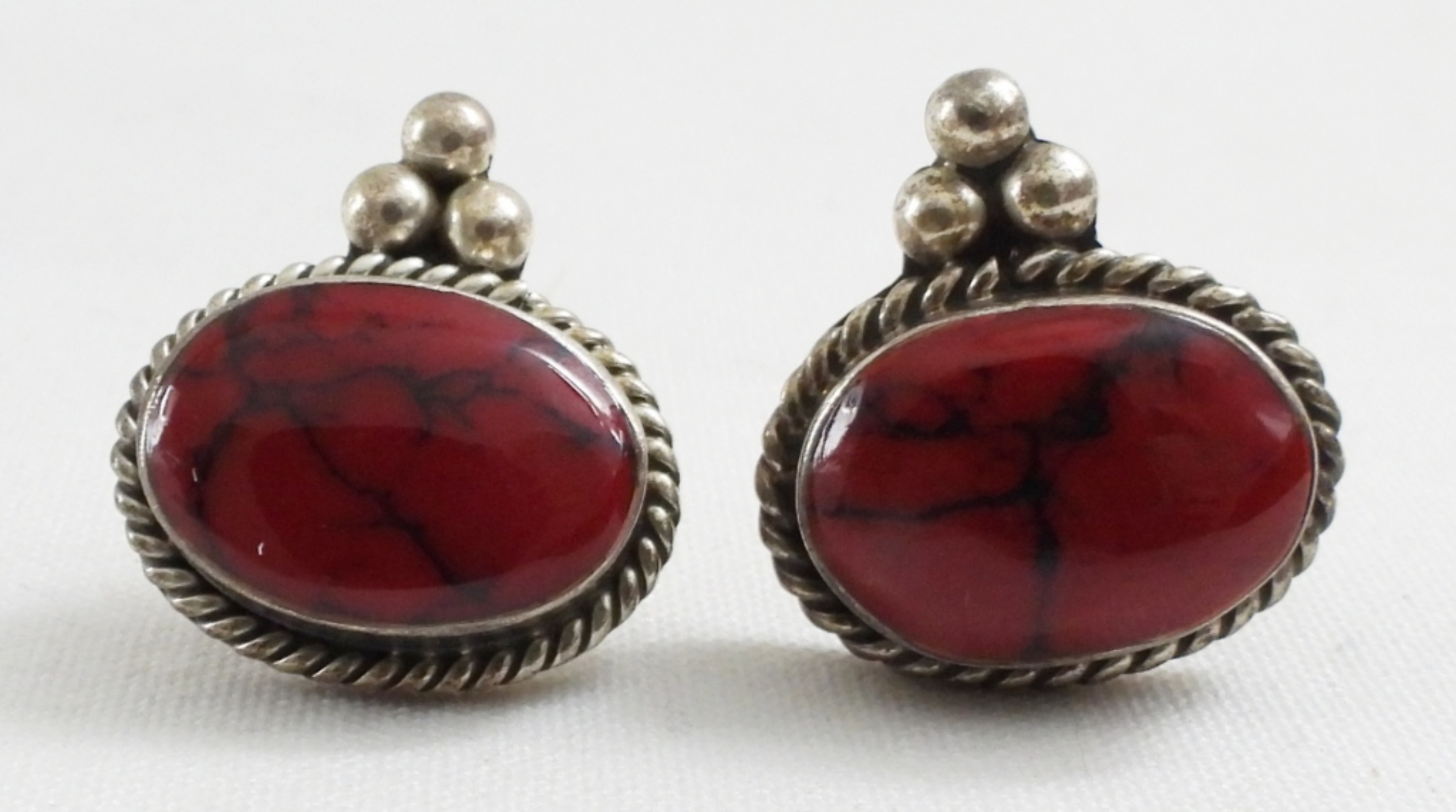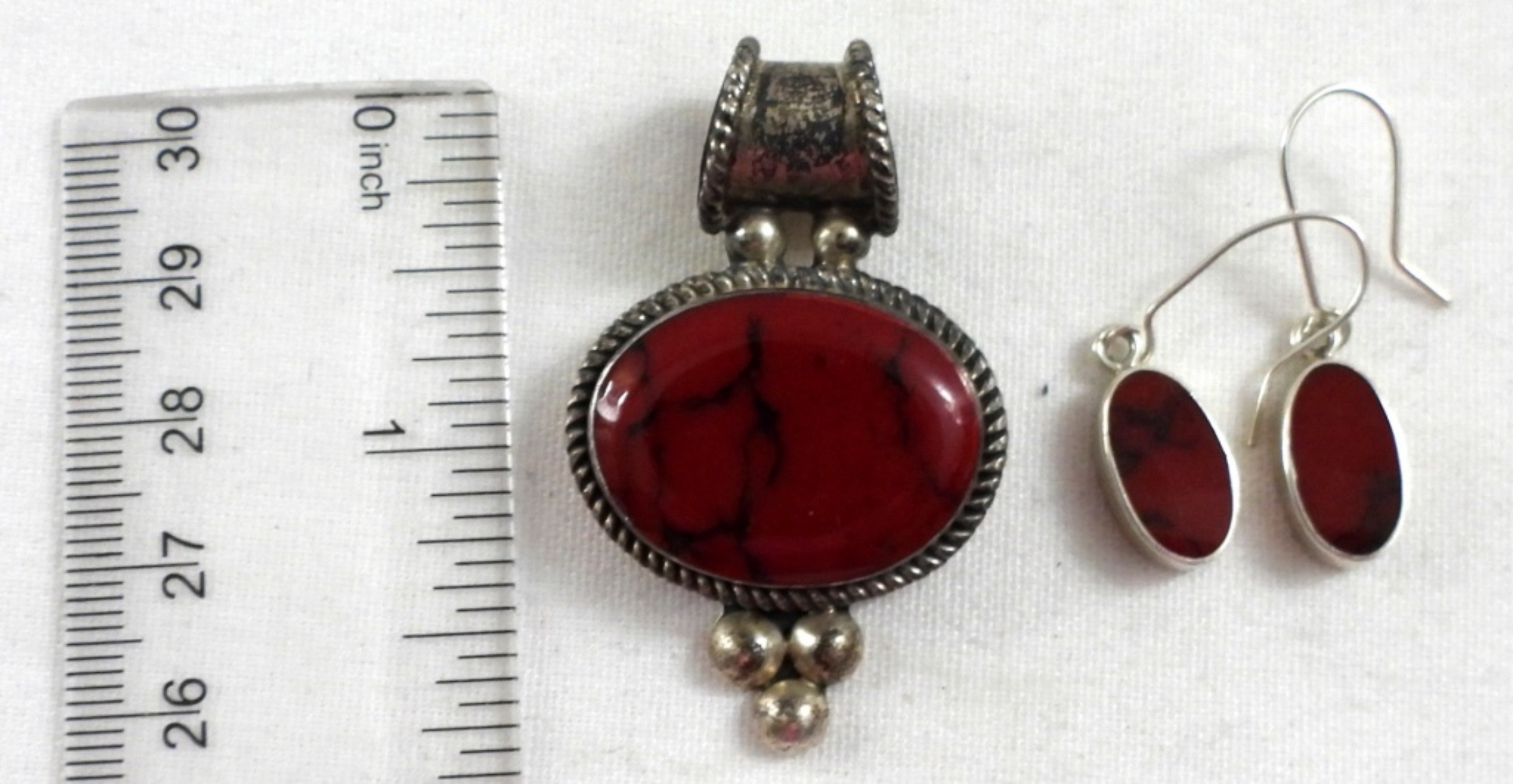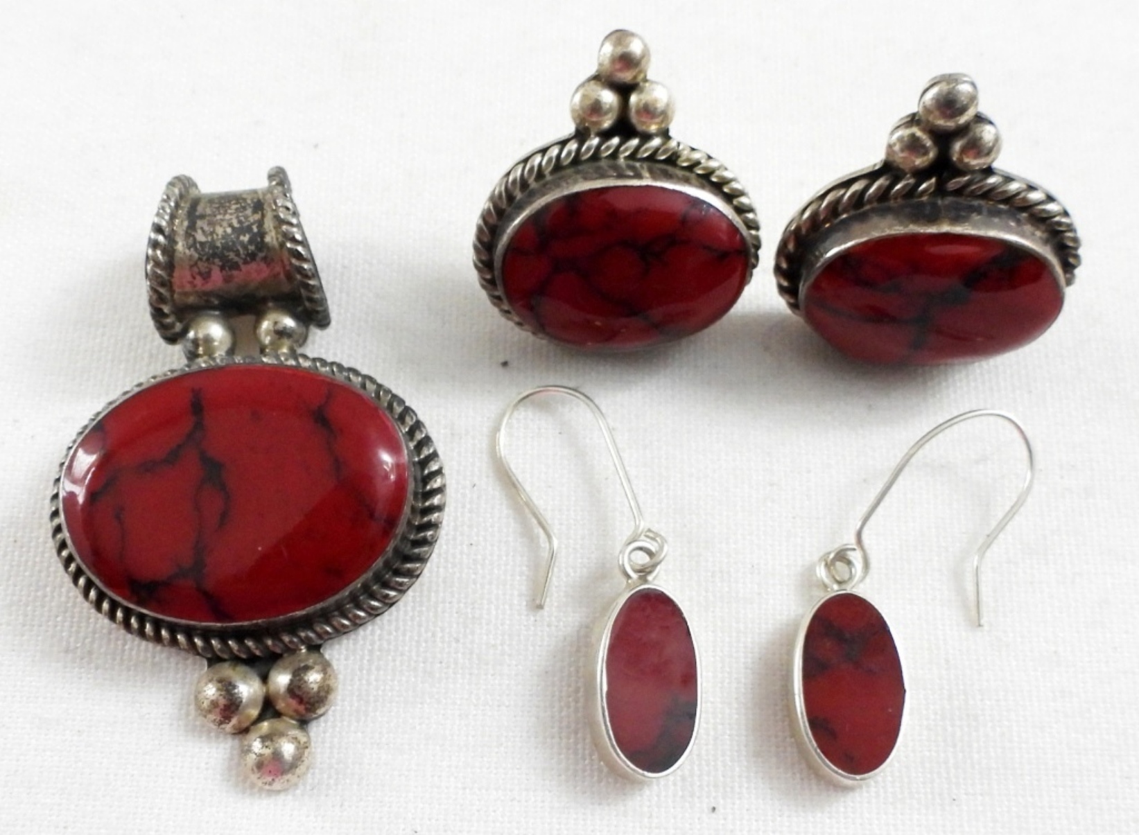 VINTAGE RED STONE MEXICO STAMPED SET, PENDANT NECKLACE NOT INCLUDED),1 SET OF DROP EARRINGS, & 1 SET OF STUD ERRINGS 925 23.3 DWT