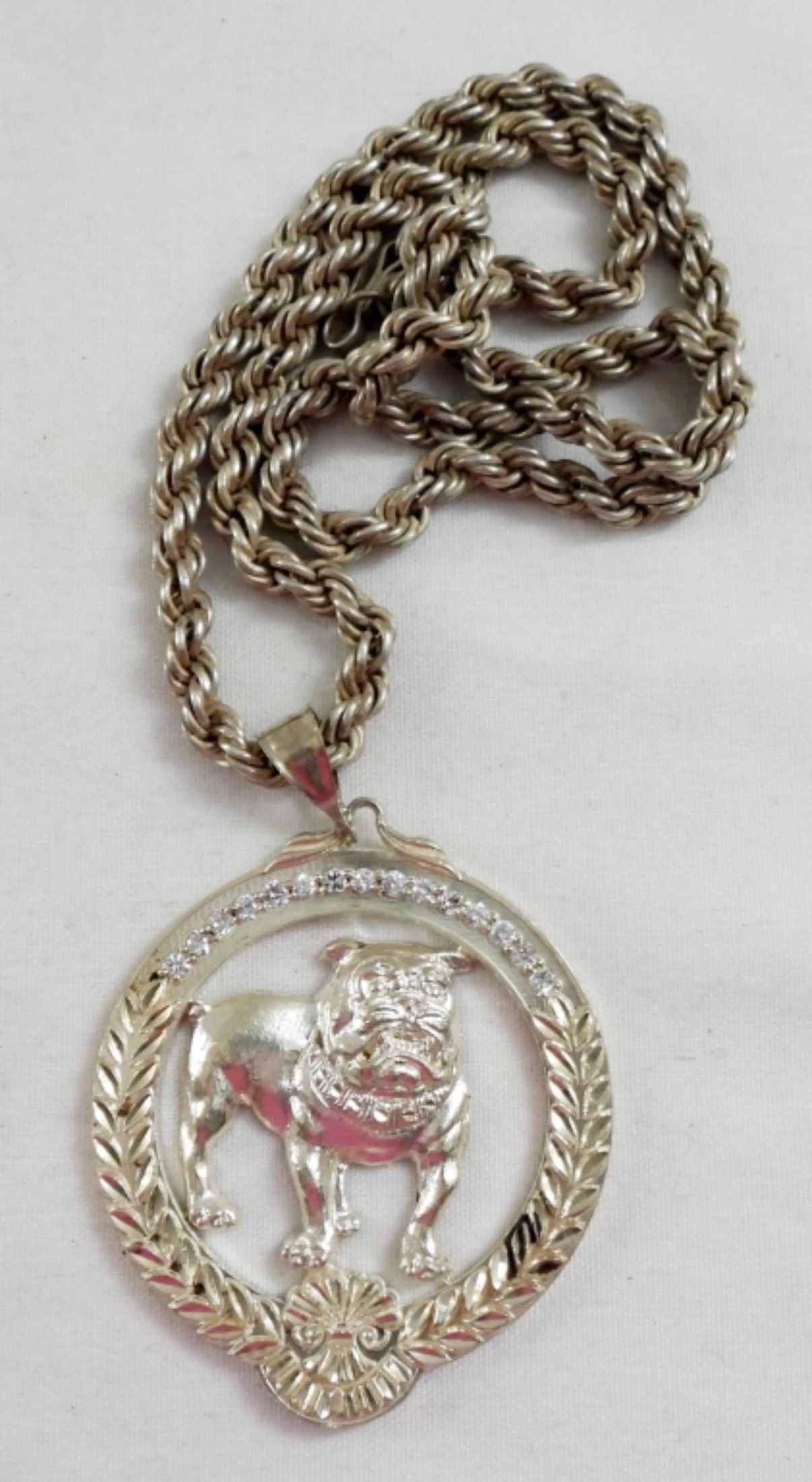 24″ STERLING CHAIN w/BULLDOG PENDANT 925 (67 DWT)
