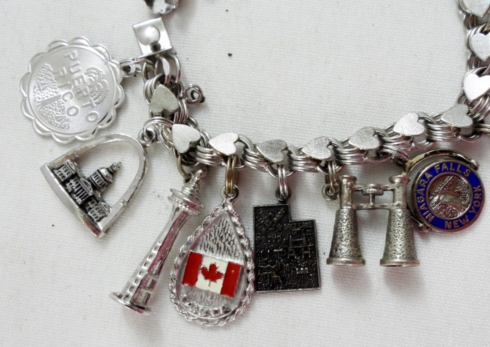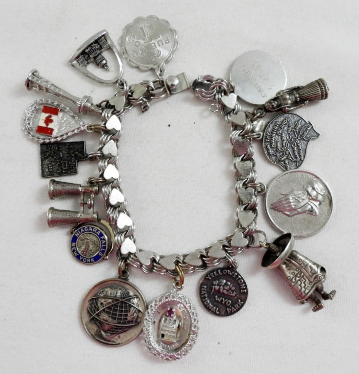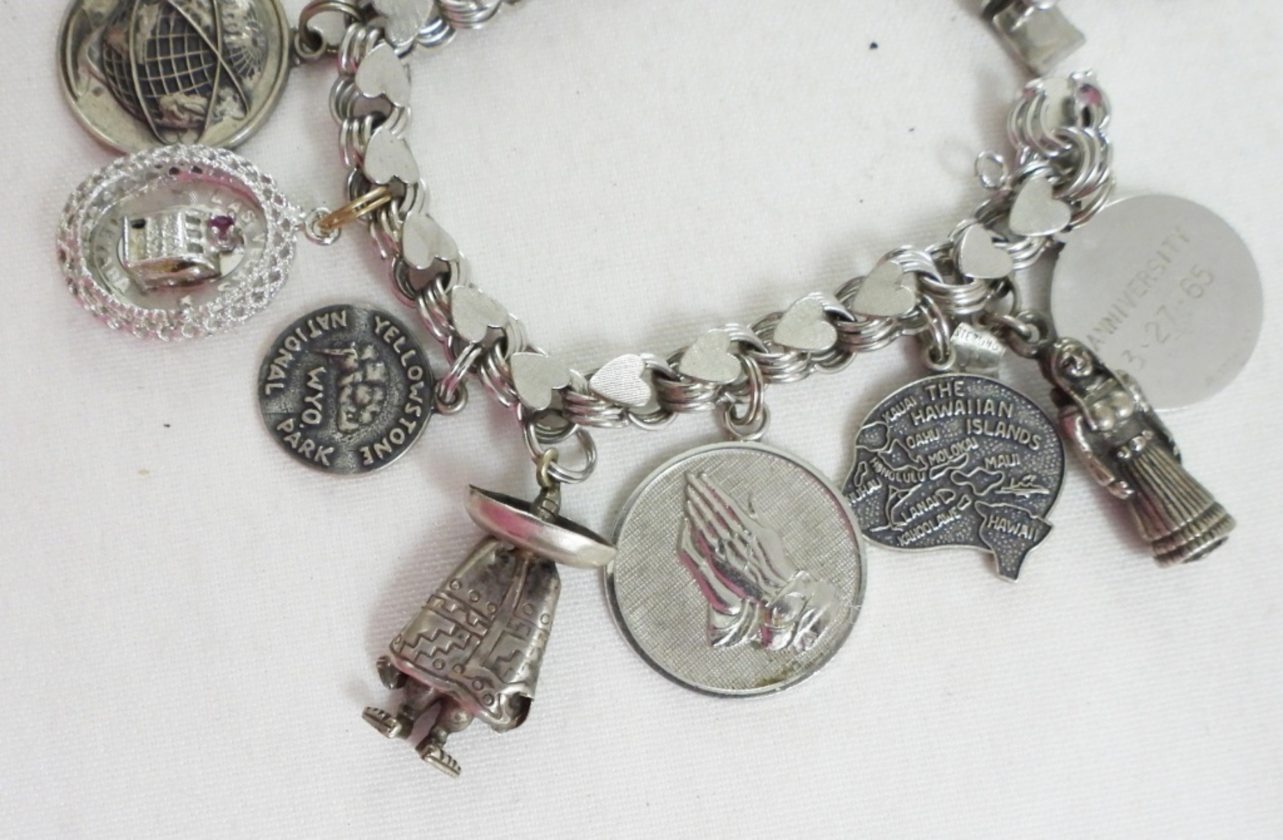 only (3) SMALL CHARMS are NOT STERLING – REST 925 – GREAT MIX DESTINATION CHARMS & MORE 7″ LONG (46 DWT)
