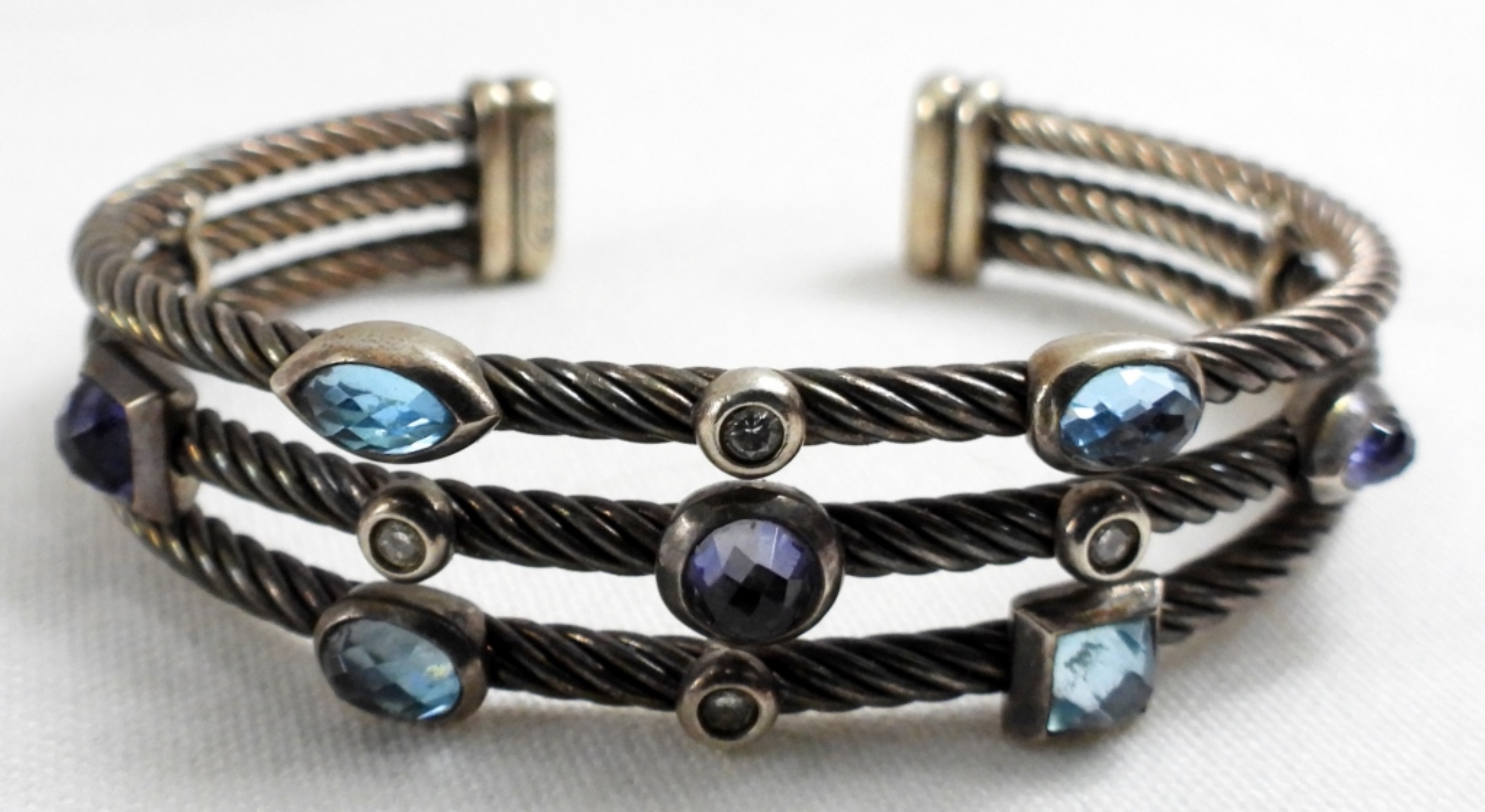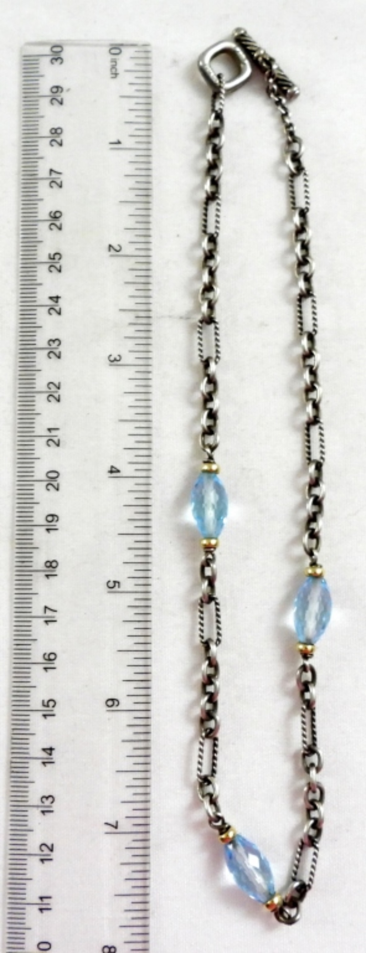 STERLING BRACELET WITH BLUE / PURPLE GEMSTONES, 7.5″. STERLING & YG NECKLACE 16″ WITH BLUE GEMSTONE BEADS. 34.5 DWT