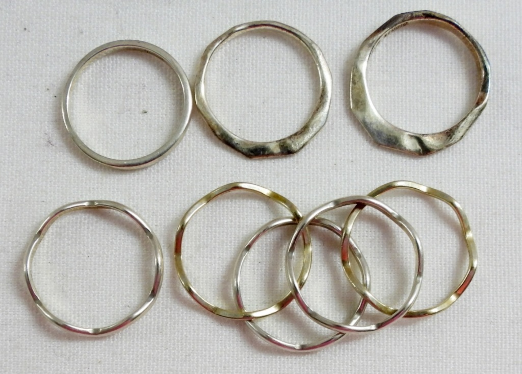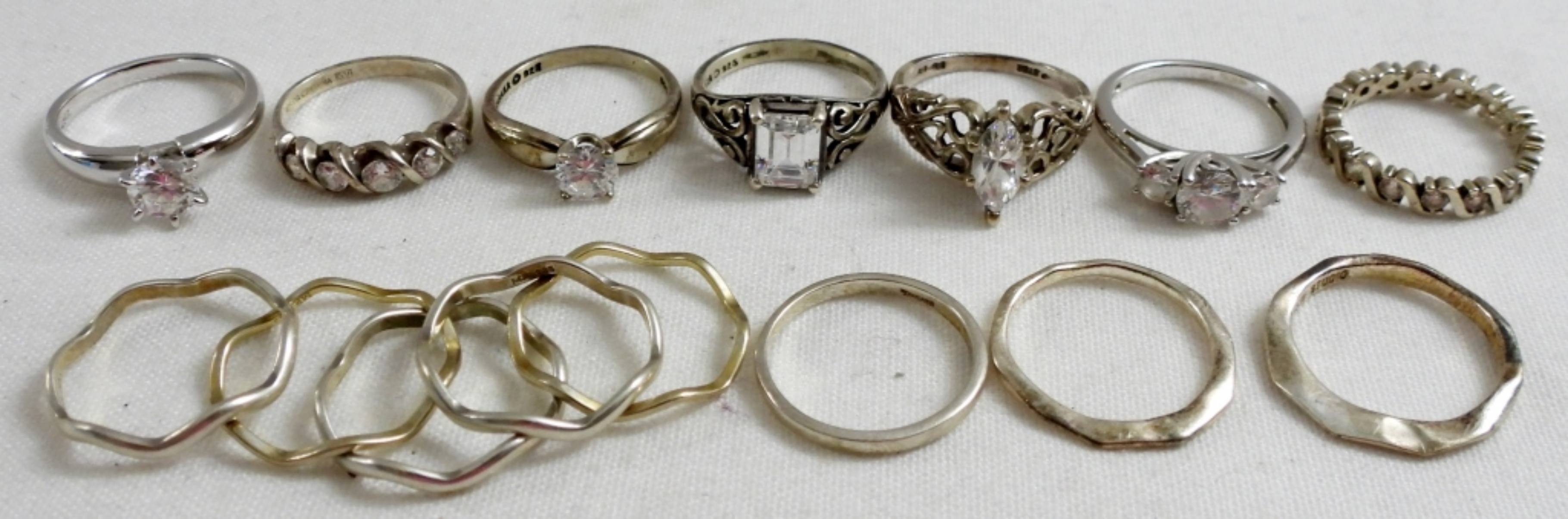 15 STERLING BRIDAL STYLE RINGS & BANDS. SIZES 7-8. 20.1 DWT