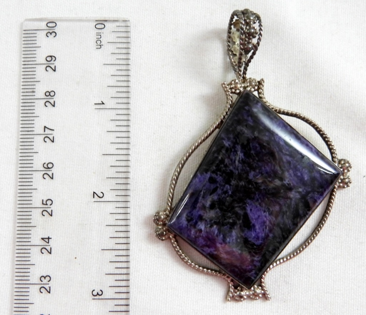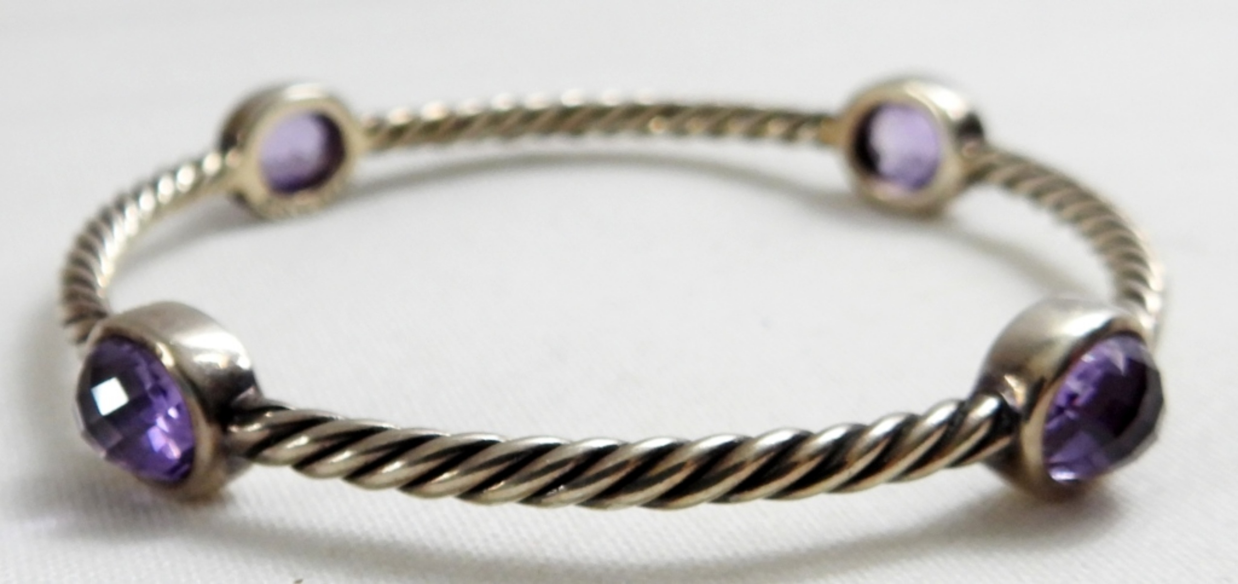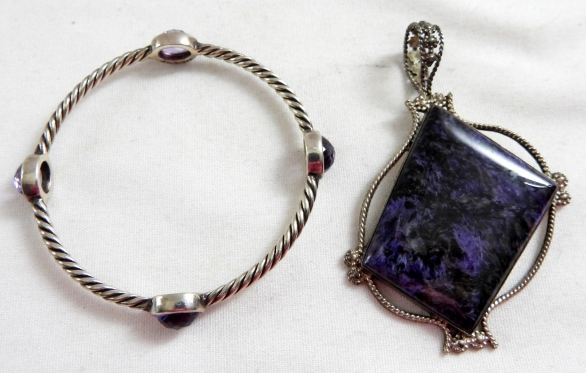 STERLING BRACELET WITH PURPLE GEMS, 7.5″. STERLING PURPLE GEMSTONE PENDANT 3.5″. 31.5 DWT