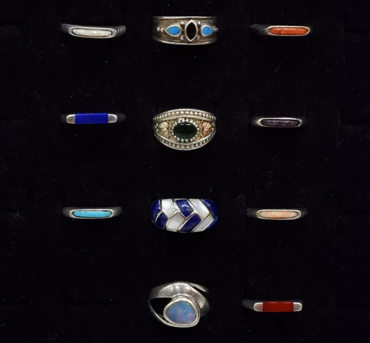 (11) STERLING RINGS WITH GORGEOUS GEMSTONES. SIZES 6-9. 25 DWT