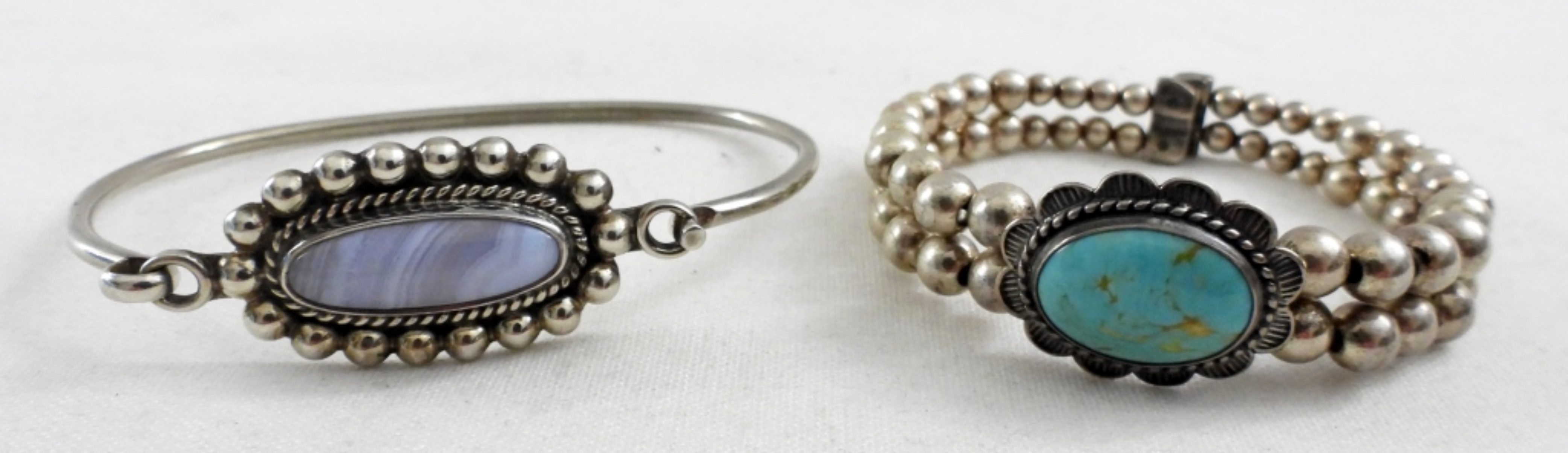 TWO STERLING BRACELETS WITH GEMSTONES. 7-8.5″. 22 DWT