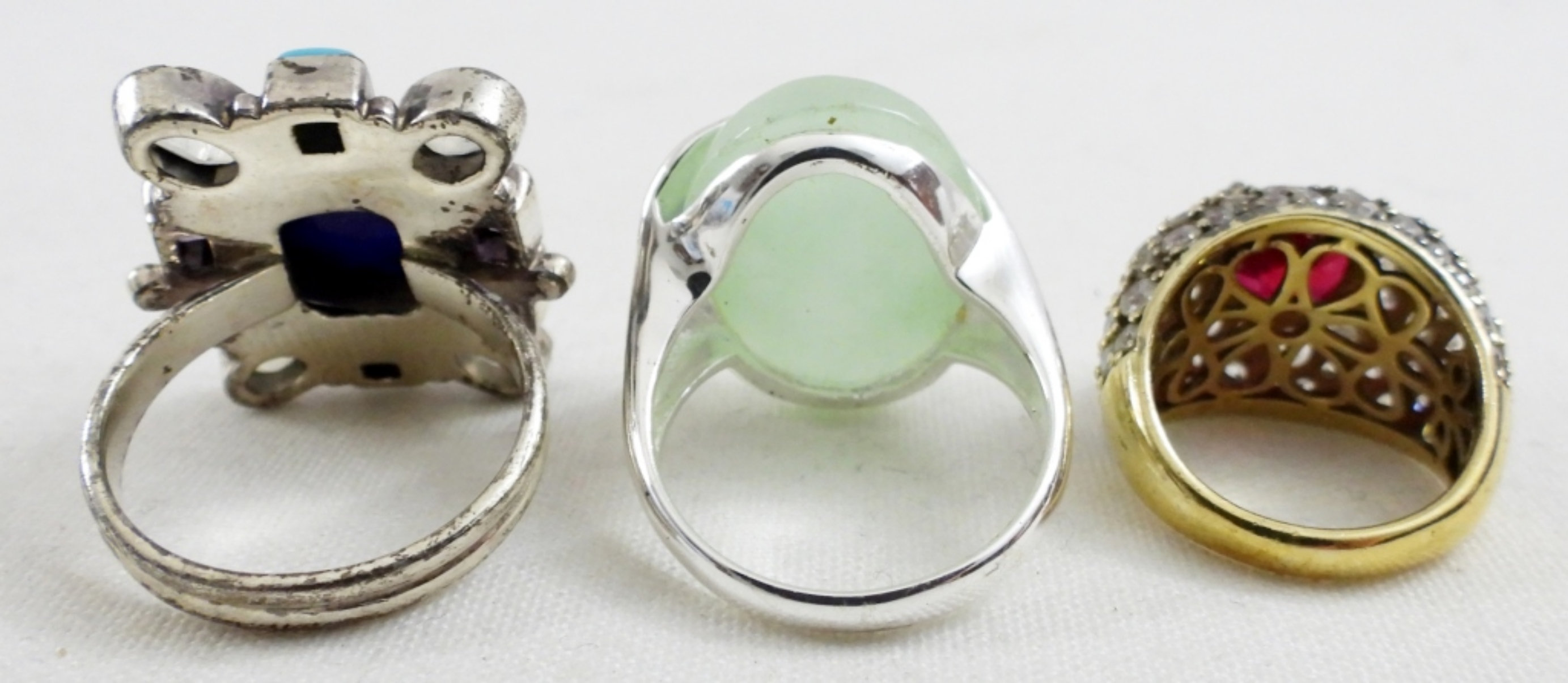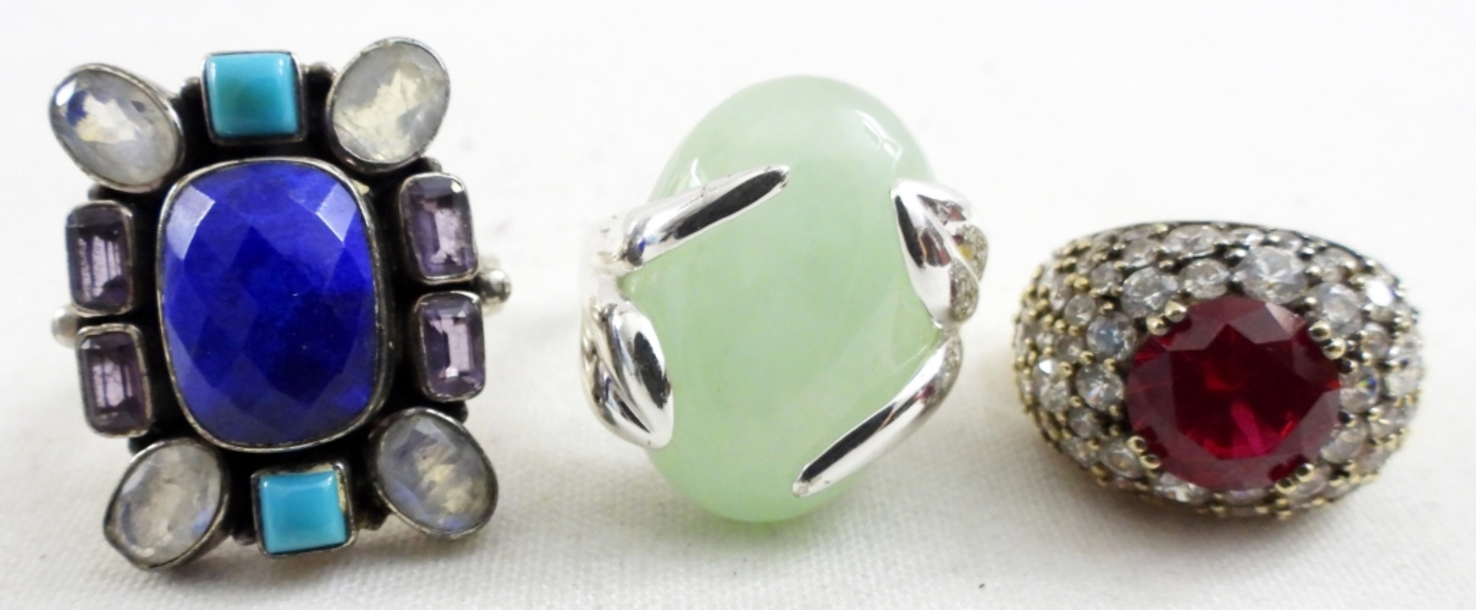 THREE STERLING GEMSTONE RINGS. SIZES 6 & 10. 21.9 DWT