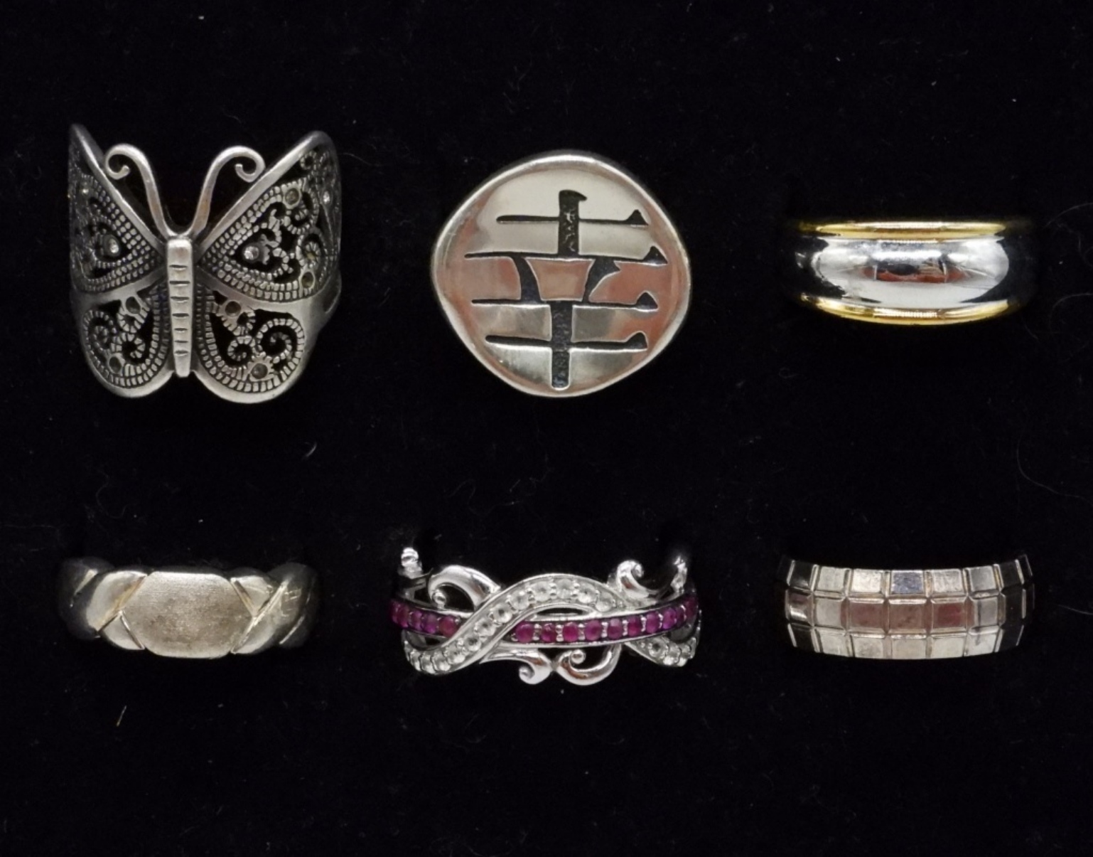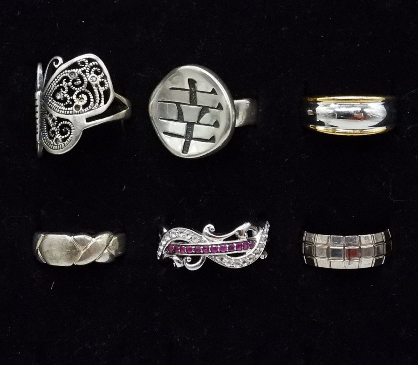 SIX STERLING SILVER FASHION RINGS / BANDS. SIZES 7-10. 22.4 DWT