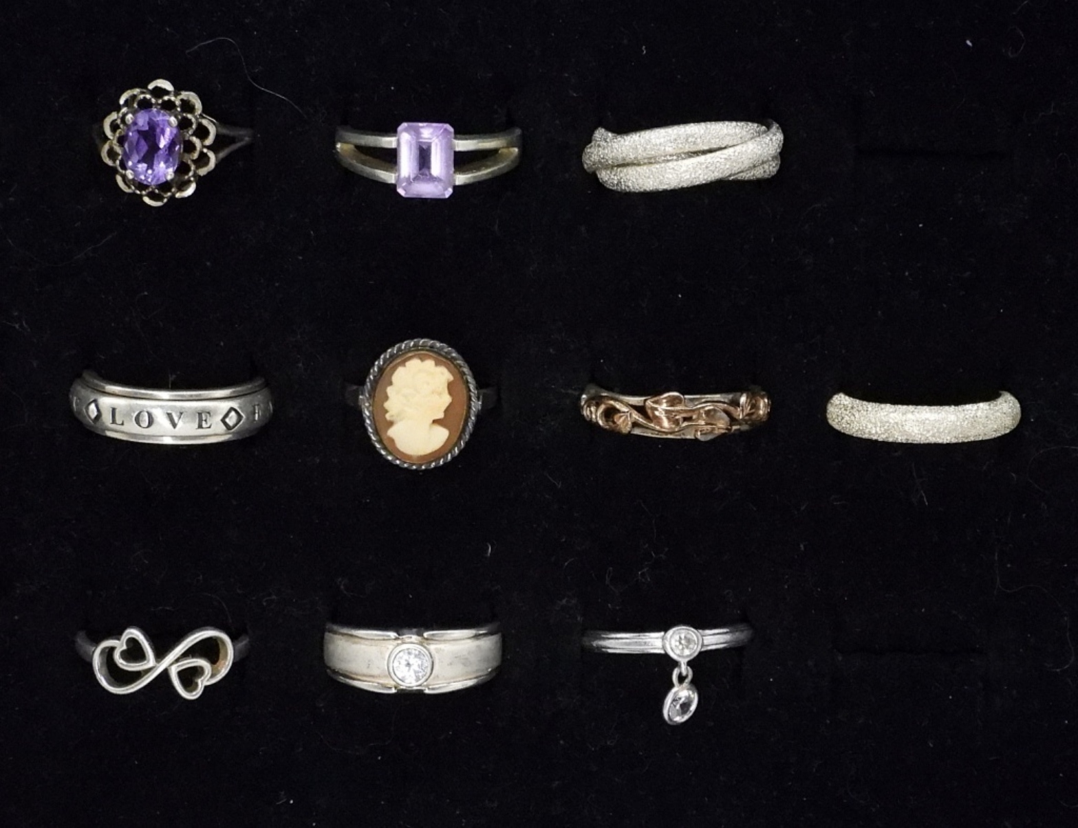 TEN STERLING FASHION RINGS. SIZES 6-7.5. 25.5 DWT