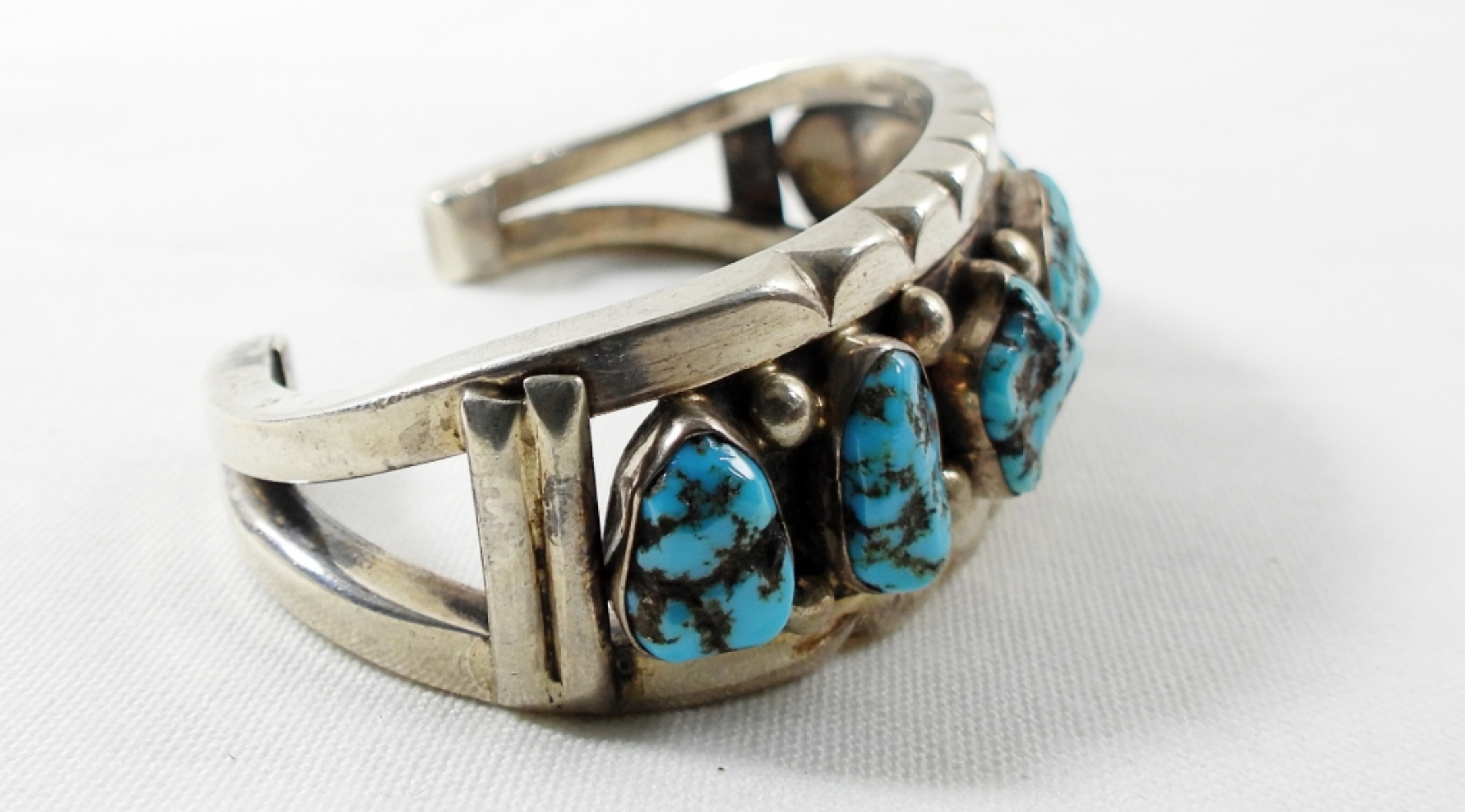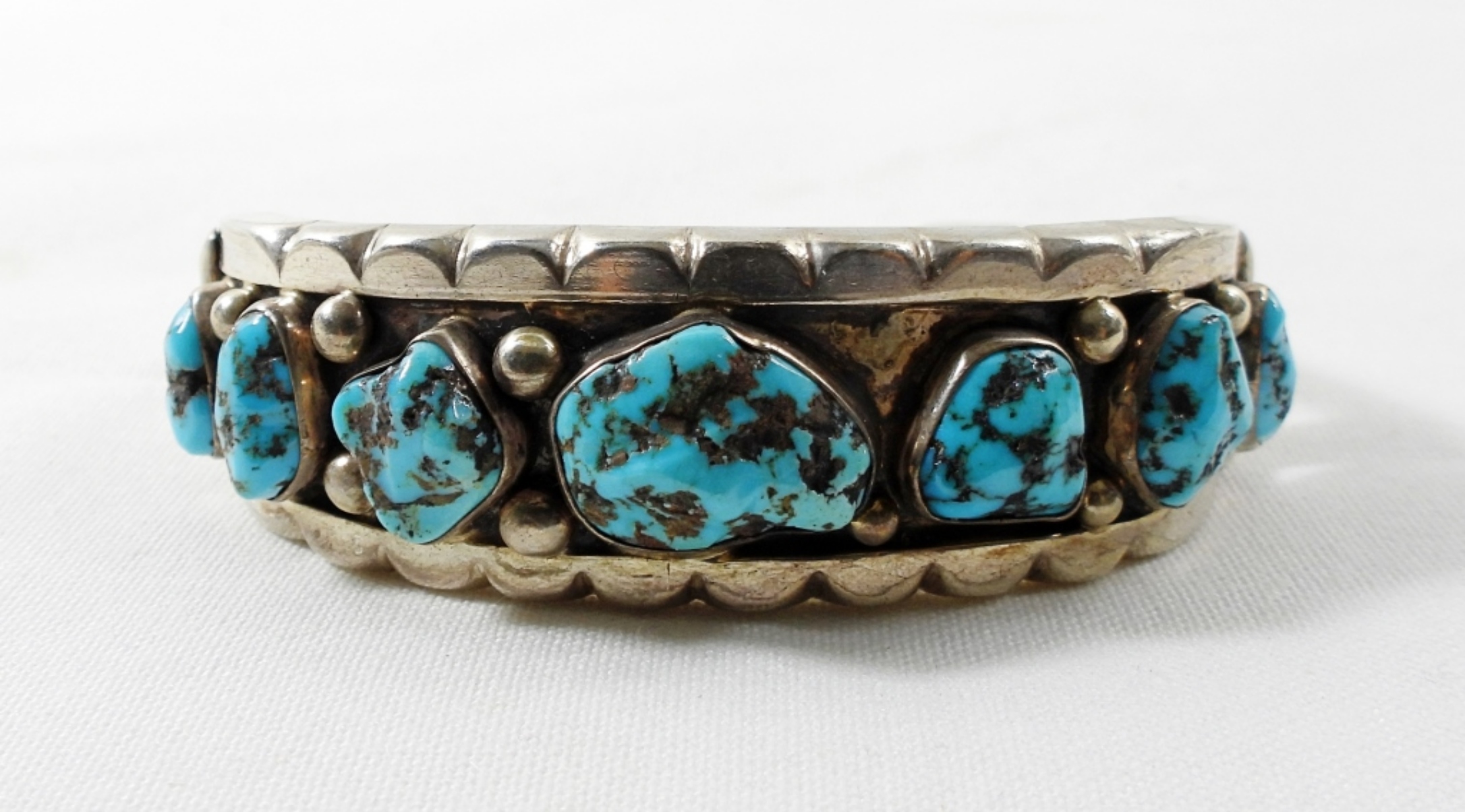 HANDMADE TOURQUOISE CUFF STYLE BRACELET 925 STERLING SILVER 44.4 DWT