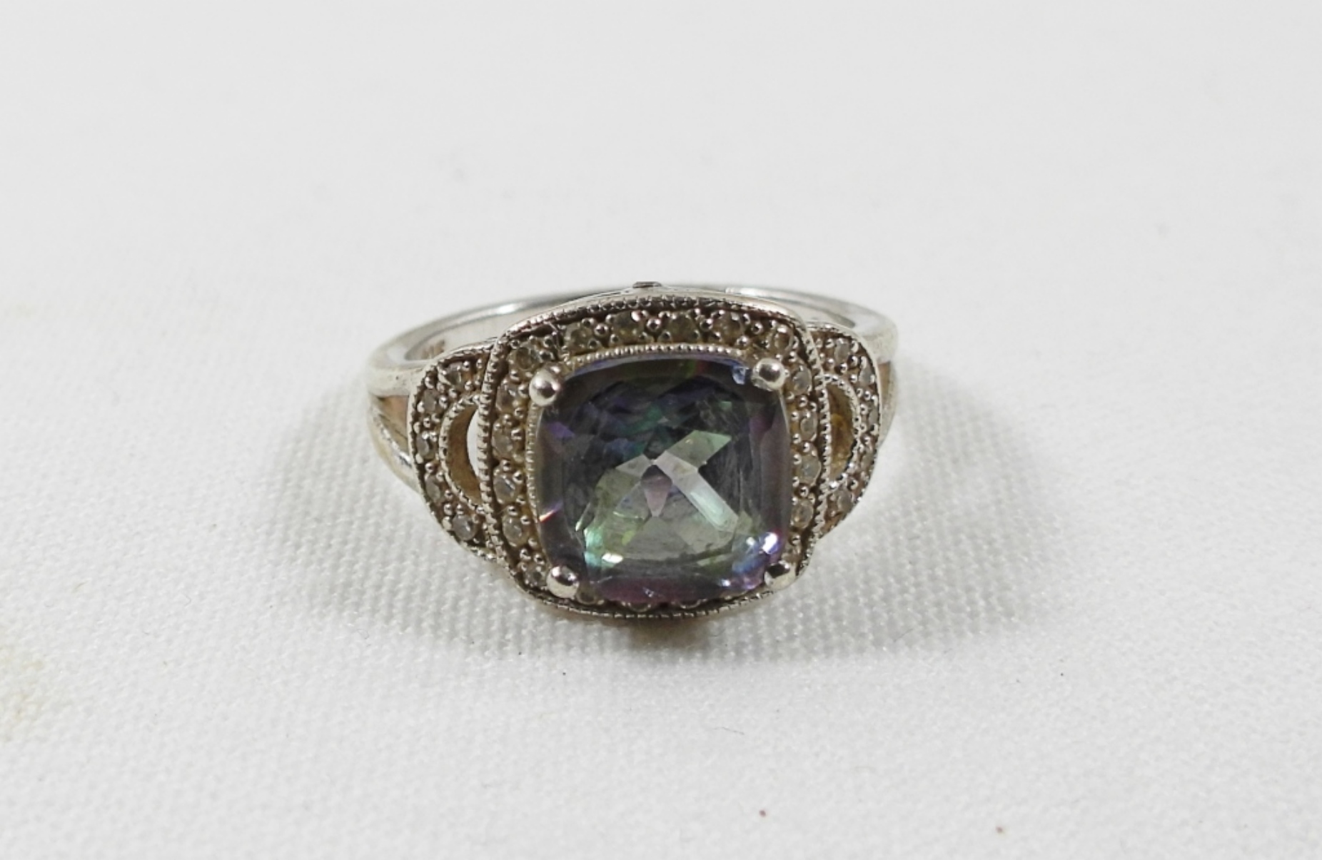 20″ NECKLACE w/PENDANT, MATCHING EARRINGS & SIZE 8 RING with RAINBOW TOPAZ (12 DWT)