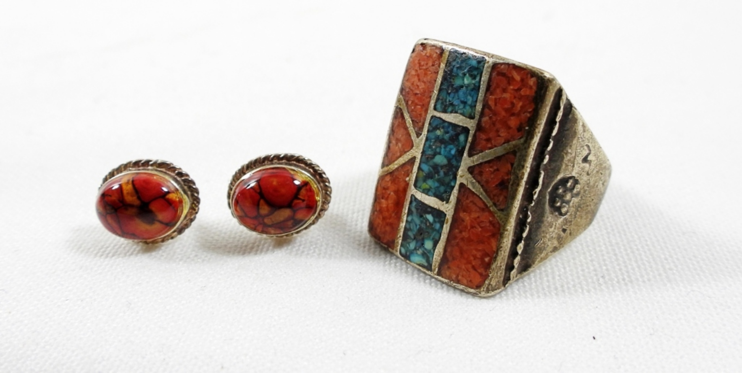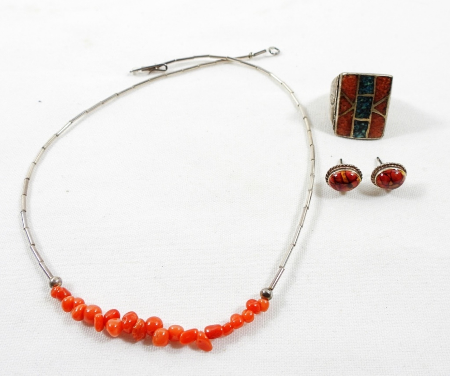 15″ NECKLACE, RING SIZE 8 & PIERCED EARRINGS (12 DWT)