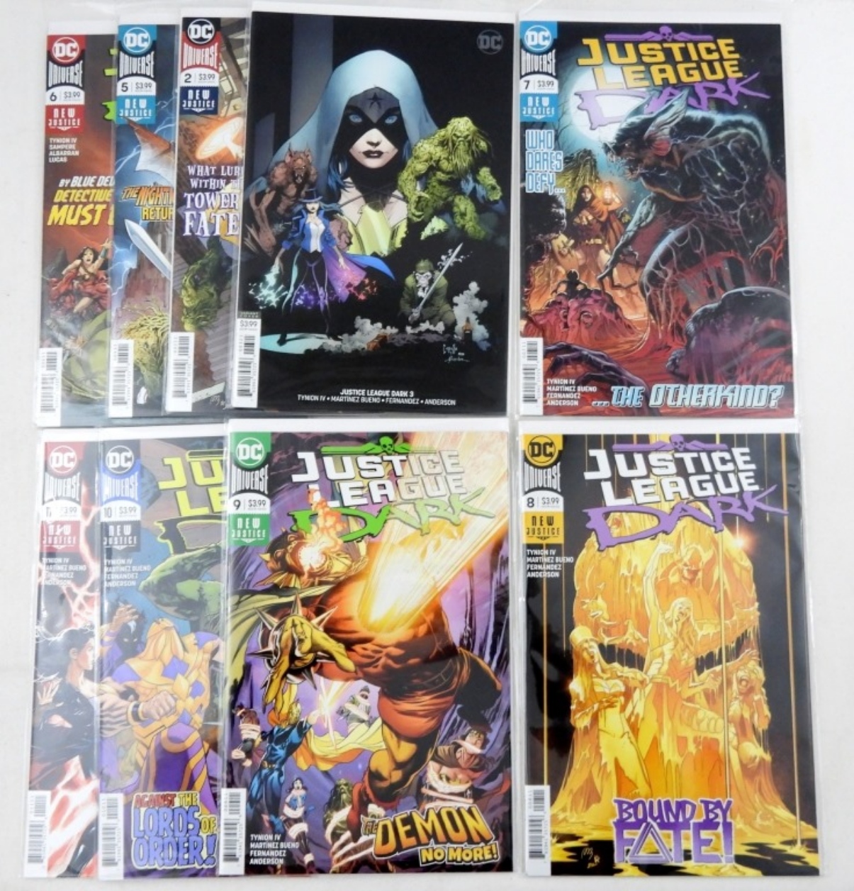 (9)MODERN DC JUSTICE LEAGUE DARK LOT, #2 WHAT LURKS WITHIN THE TOWER OF FATE,#3,#5 NIGHT MASTER RETURNS,#6,#7 WHO DARES DEFY,#8 BOUND BY FATE,#9,#10,#11 AGAINST THE POWER OF MORDRU! ( VG-VF)