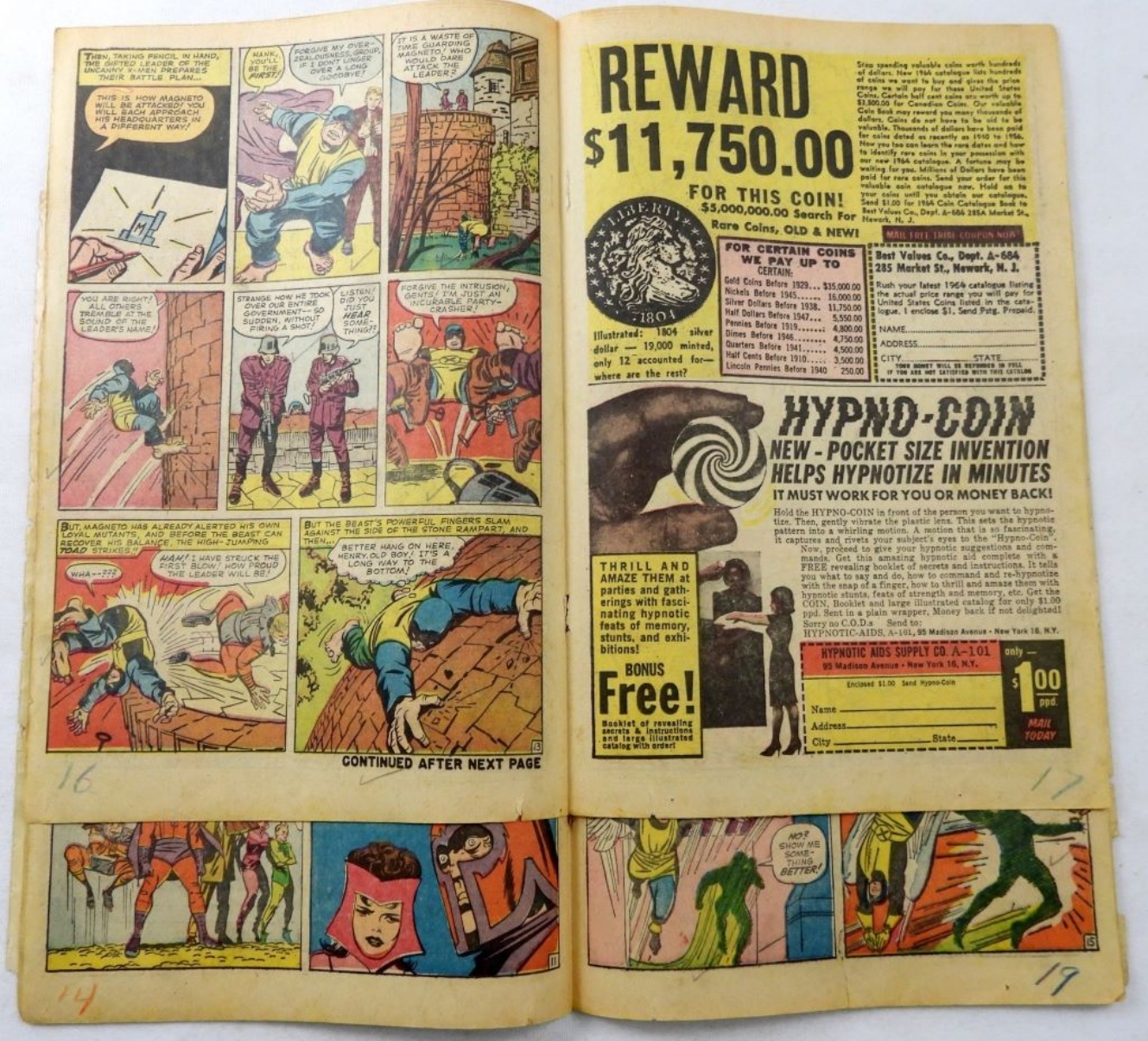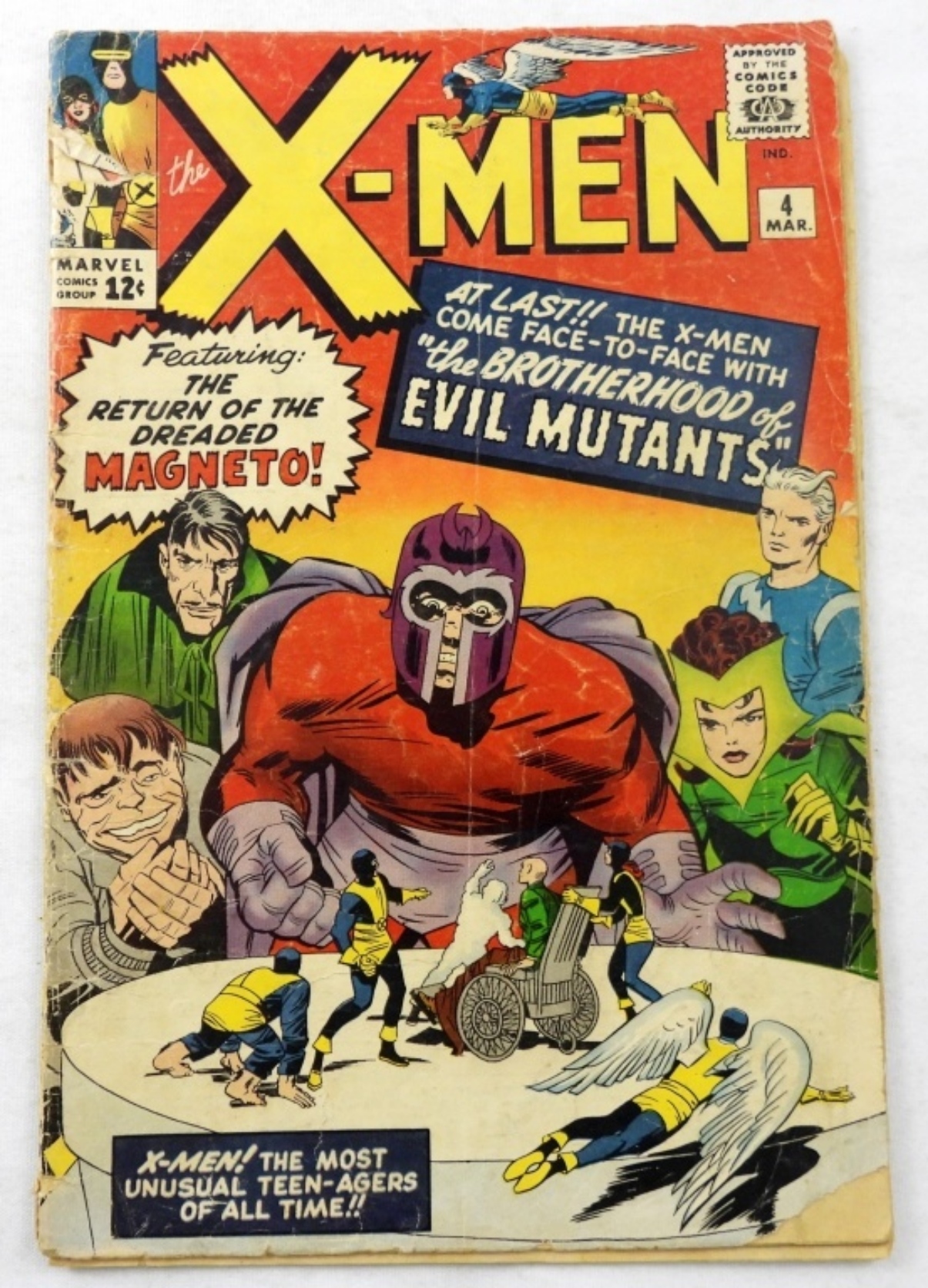 1964 VOL 1 NO 4 MARVEL X-MEN, GOOD CONDITION–SMALL TEAR ON BOTTOM CORNER AND PENCIL MARKINGS ON PAGES, 1ST APP OF BROTHERHOOD OF MUTANTS