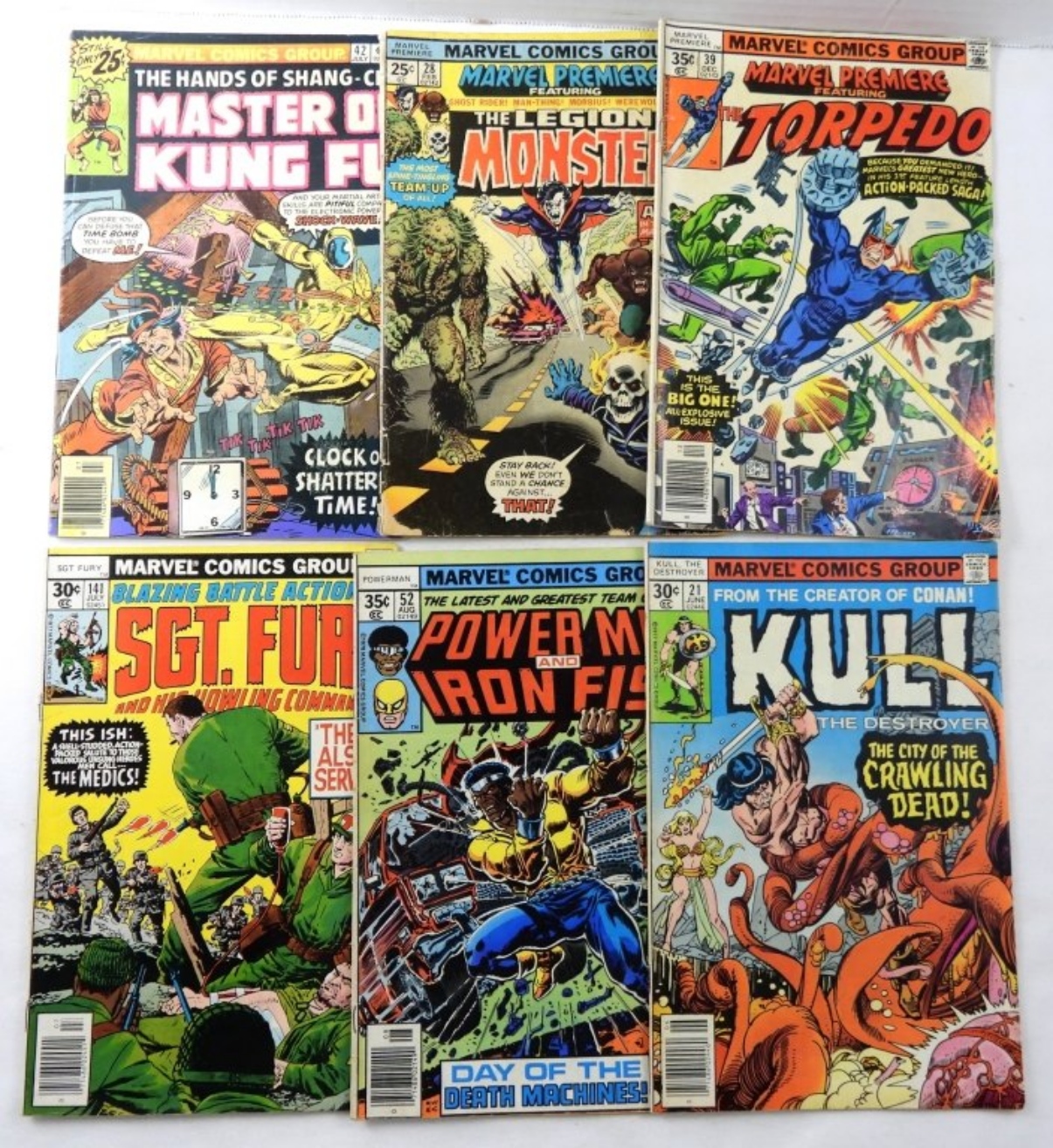 BRONZE AGE MARVEL COMIC LOT: THE TORPEDO #39, JOURNEY INTO MYSTERY #19, THE LEGION OF MONSTERS #28 (COMES AWAY FROM SPINE), MASTER OF KUNG FU #42, THE ETERNALS #8, INVADERS #13, KULL #21, TRIPLE ACTION X-MEN #45, POWER