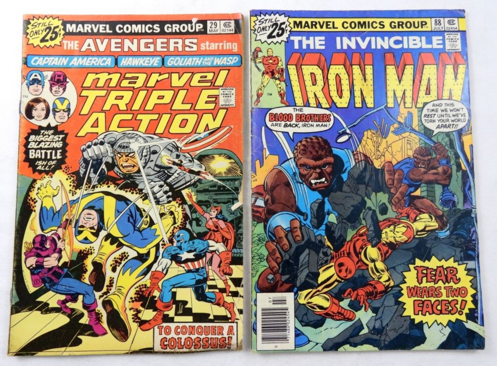 BRONZE AGE MARVEL COMIC LOT: AVENGERS #153 AND 159, MARVEL TRIPLE ACTION #29, HULK #233, IRON MAN #88, GOOD-VERY GOOD CONDTION