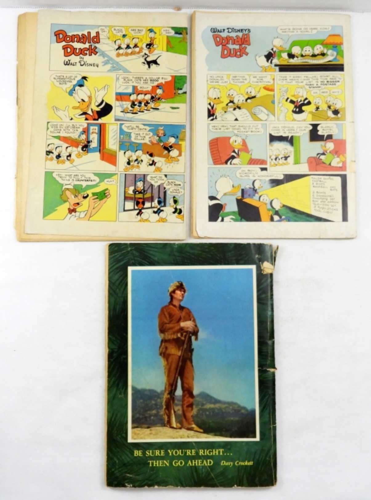 (2) WALT DISNEY DONALD DUCK COMICS IN GOOD CONDITION #328,#367. WALT DISNEY DAVY CROCKETT #1 IN FAIR TO GOOD CONDITION.