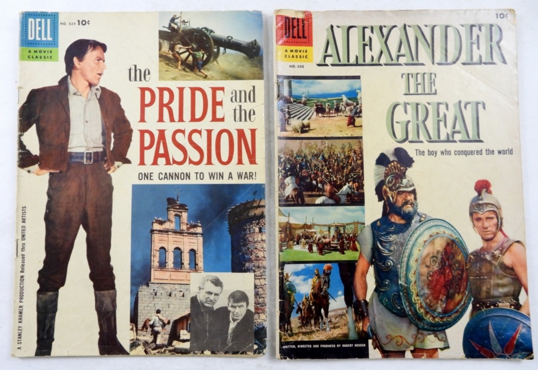 SANTIAGO #723, ALEXANDER THE GREAT #688, THR PRIDE AND THE PASSION #824, THE CISCO KID # 39, THE CONSPIRATORS #158. ALL COMICS ARE IN FAIR TO GOOD CONDITION.