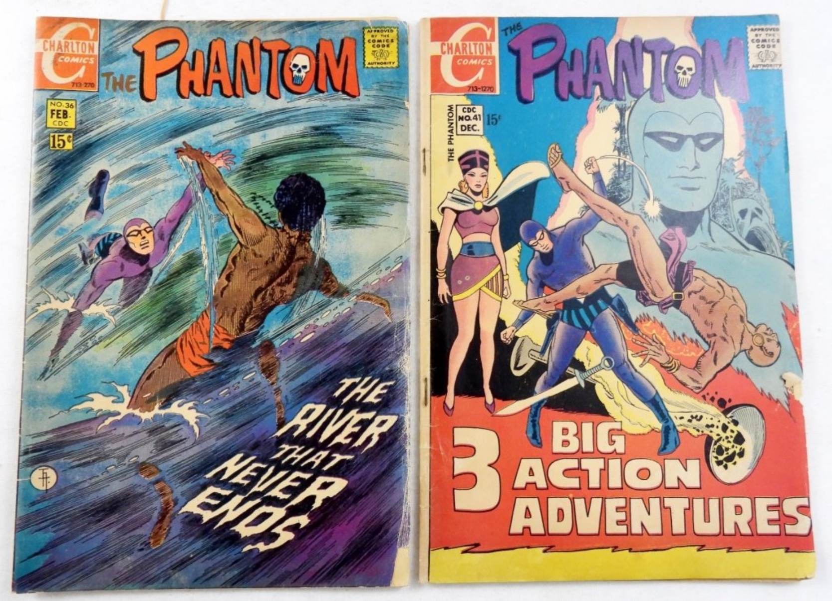 CHARLTON COMICS- TH PHANTOM- THE RIVER THT NEVER ENDS #36, 3 BIG ACTION ADVENTURES #41, NIGHTMARE MEDICINE IN BENGALI #57, BANDAR BETRAYERS # 37, HOLLYWOOD ROMANCES # 57