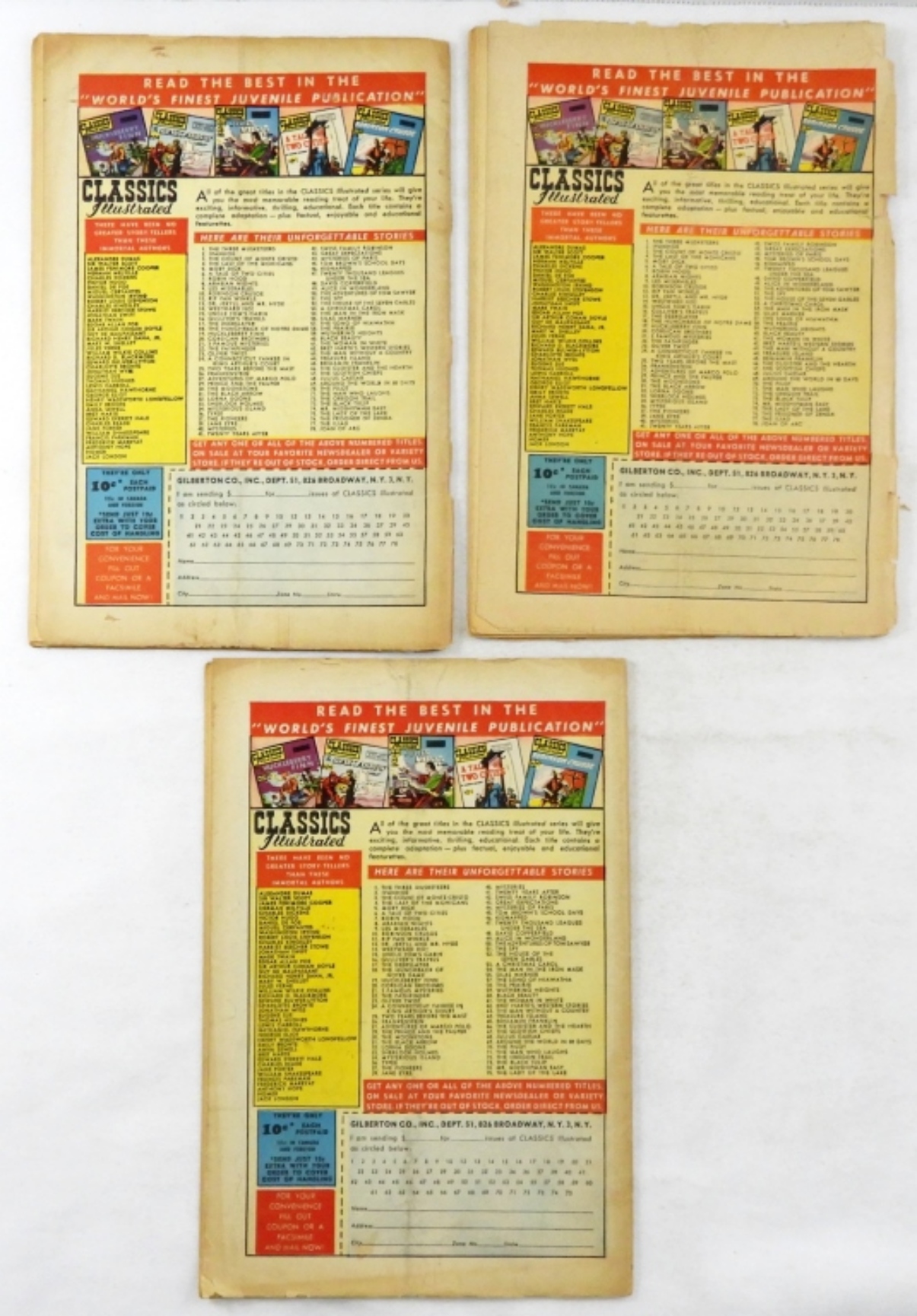 THE PRISONER OF ZENDA #76 BY ANTHONY HOPE, HOMER’S ILIAD #77, JOAN OF ARC #78. COMICS ALL IN FAIR TO GOOD CONDITION.