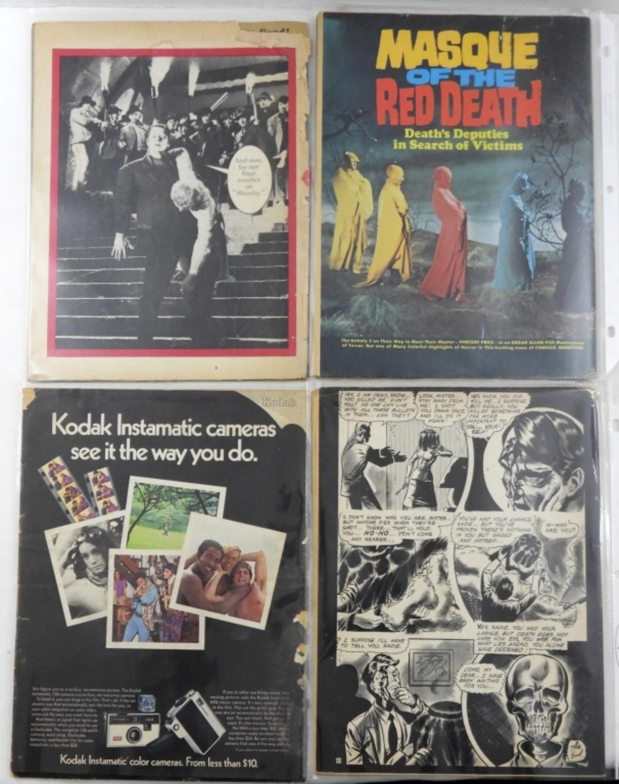 THE TALES FROM THE TOMB 1970, FAMOUS MONSTERS OF FILMLAND #107, MONSTERS UNLIMITED, FRANKENSTEIN SCHOLASTIC SCOPE SEPT. ALL COMICS ARE IN GOOD CONDITION.