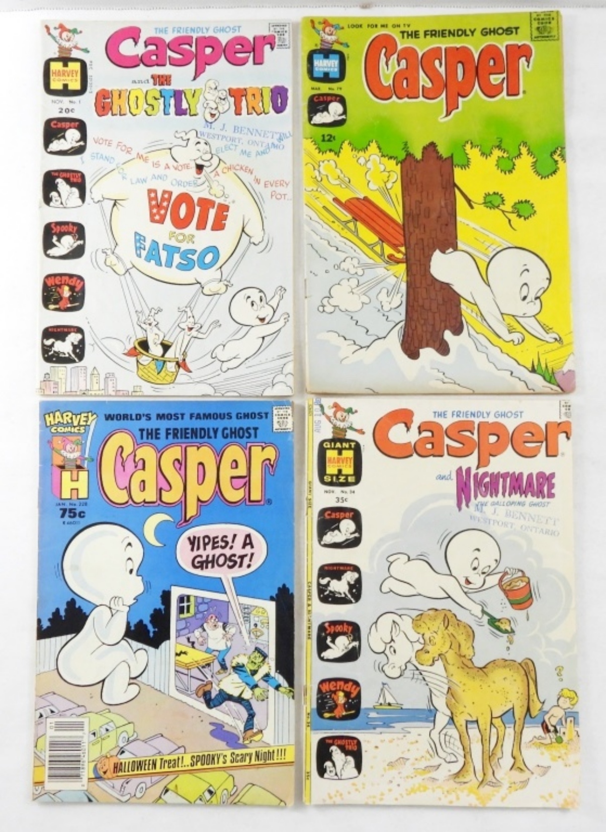HARVEY COMICS CASPER 12c 1965 #79 VF. CASPER 20c 1972 #1 VF. CASPER 35c 1971 #34 FAIR. CASPER 75c 1987 #228 VF.