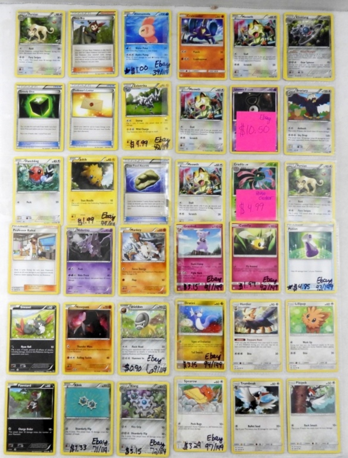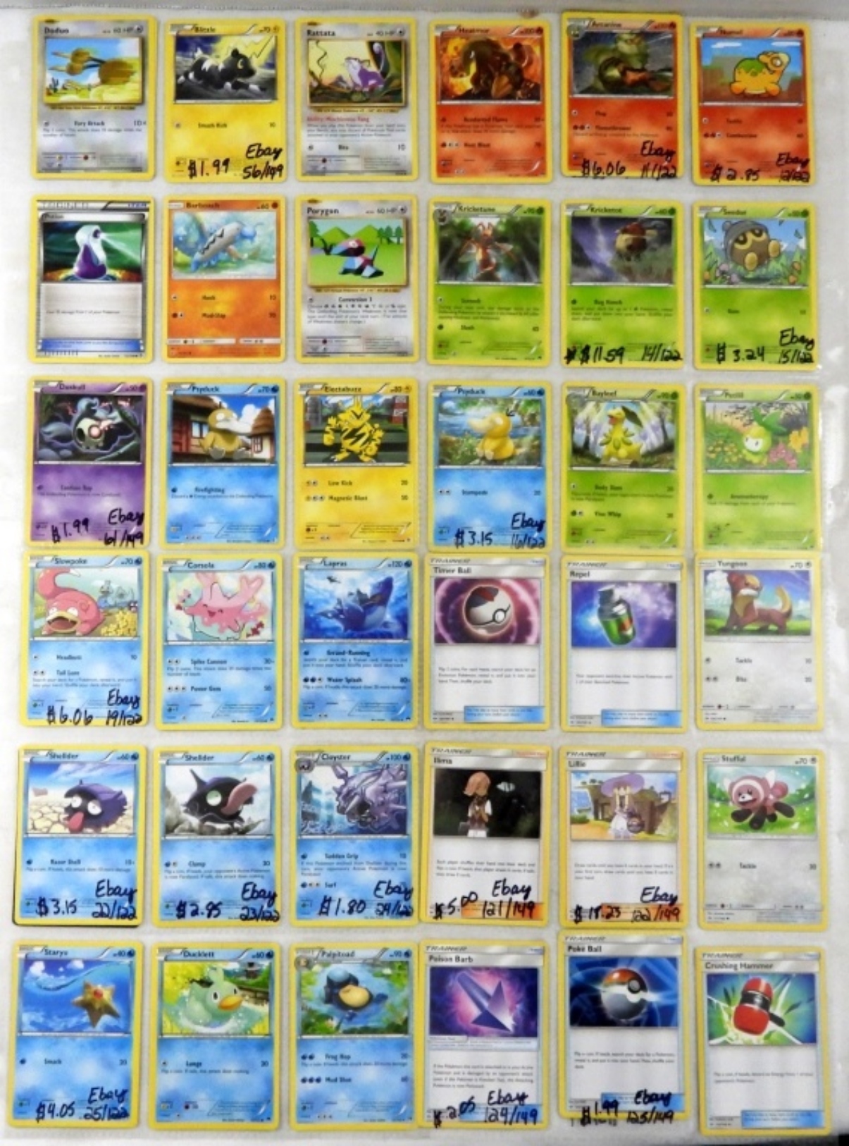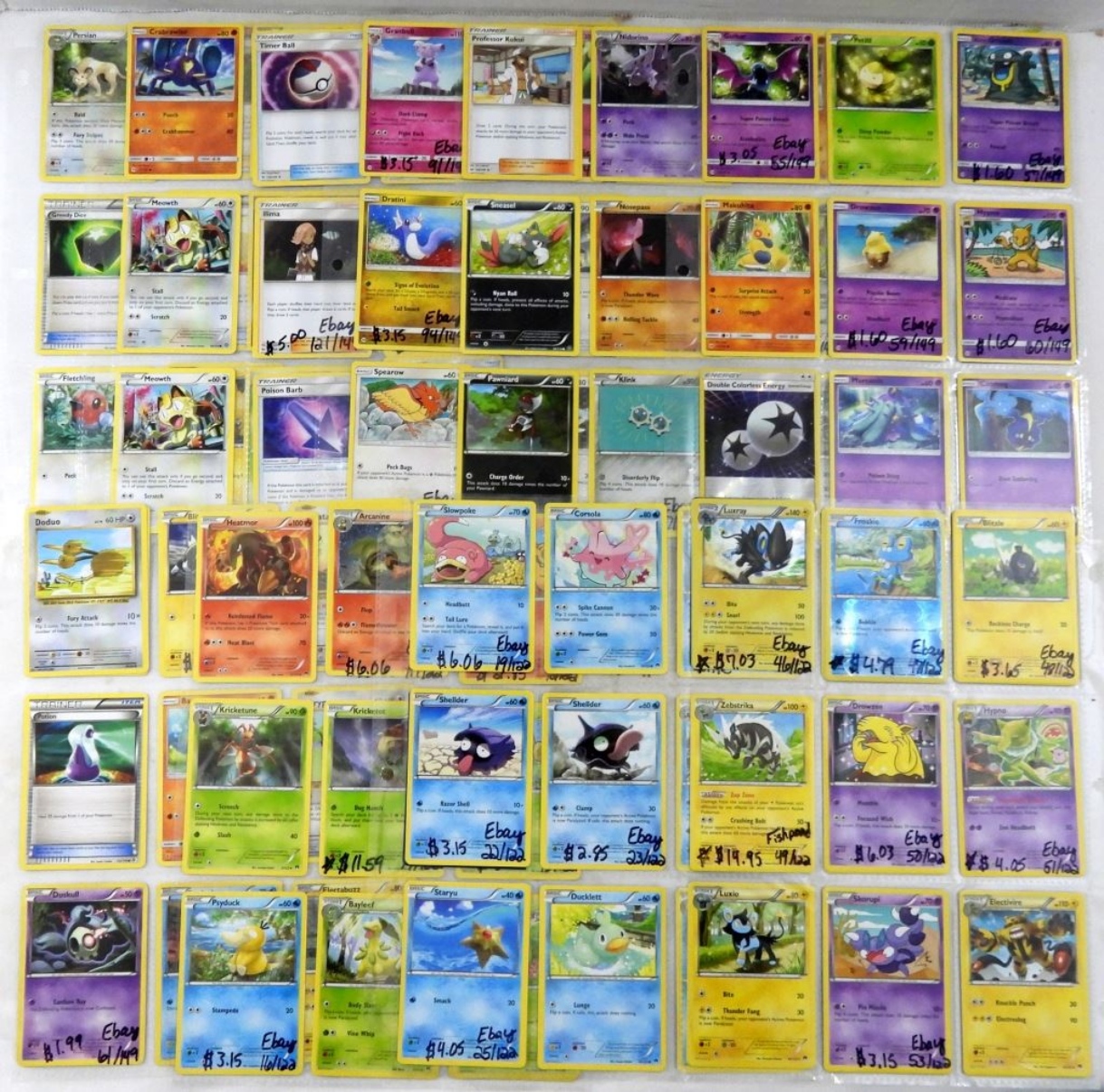 LUXRAY HOLO 46/122, FROAKIE HOLO 38/122, SLOWPOKE 19/122. ALL CARDS IN GOOD CONDITION. 10 PAGES. (90 CARDS)