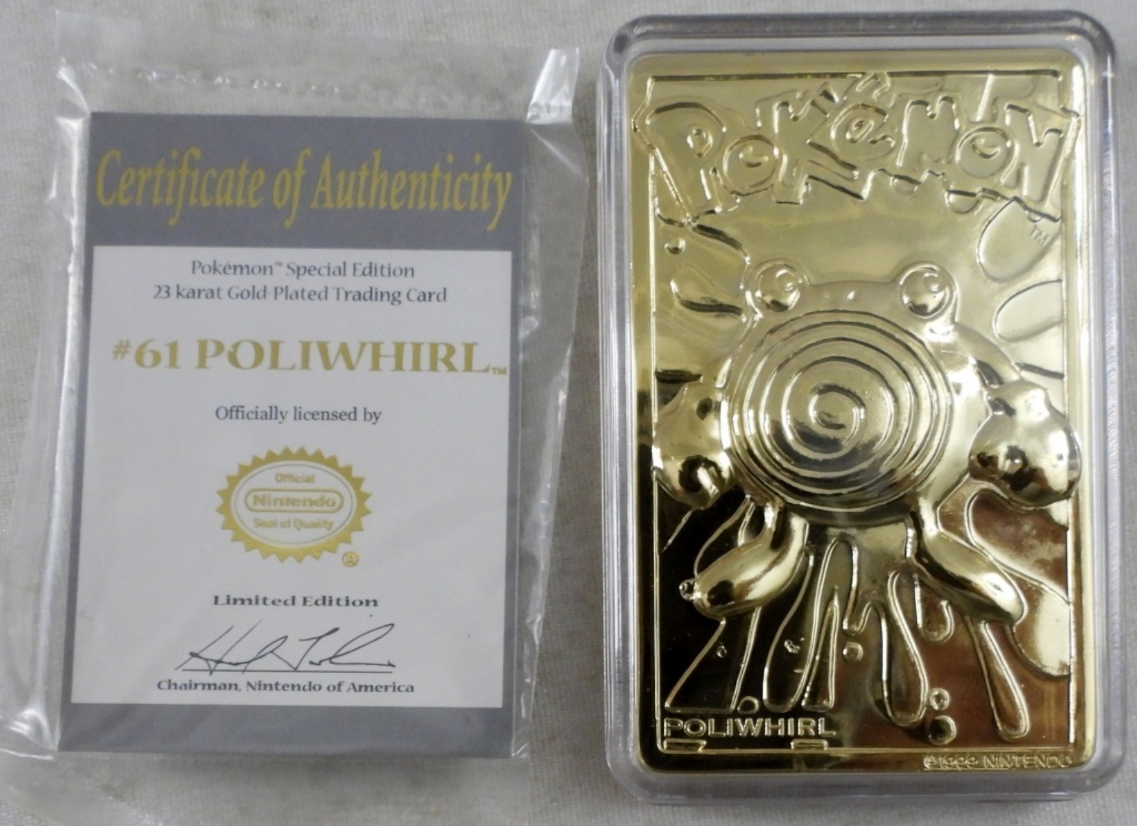 1999 POKEMON GOLD BAR #61 POLOWHIRL POKEMON BALL, SLIGHT WEAR ON POKEMON BALL, GOLD CARD AND CERTIFICATE IN ORIGINAL PACKAGING